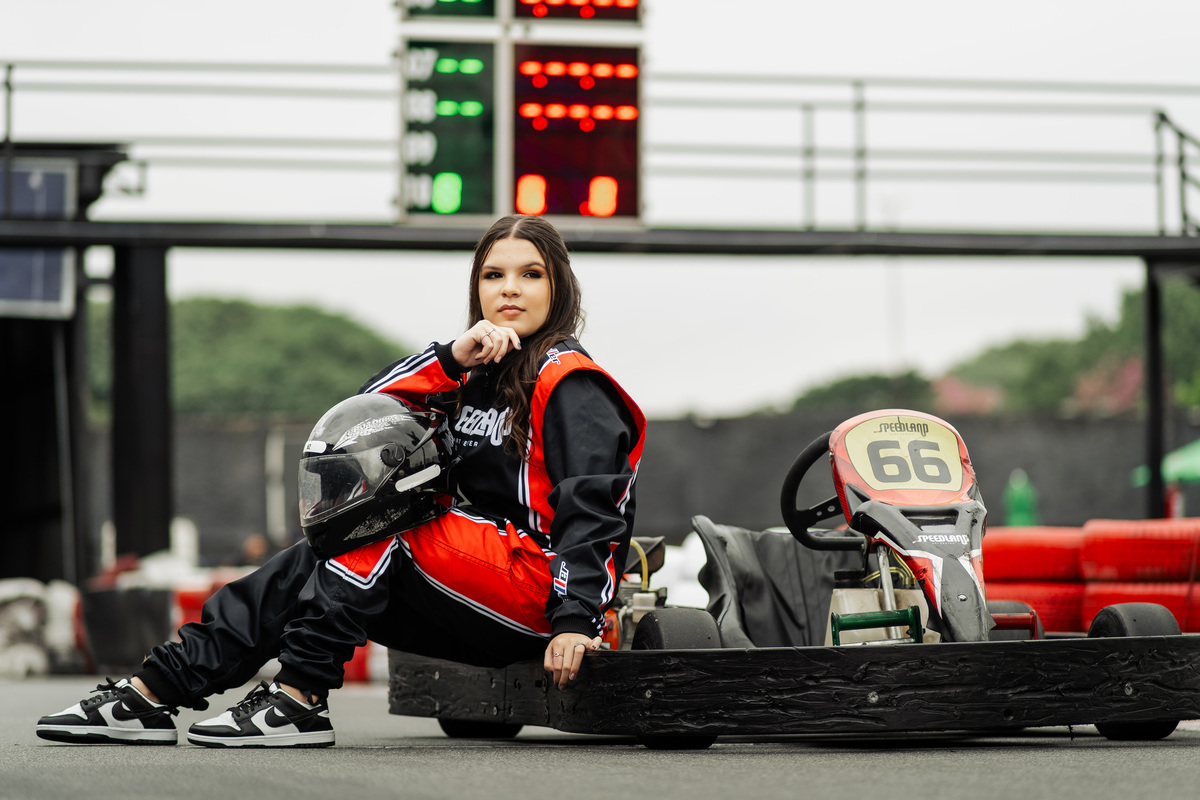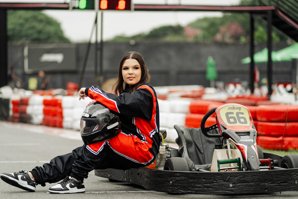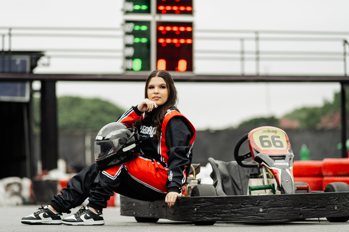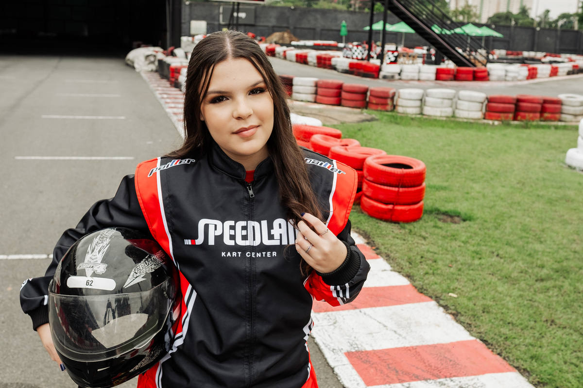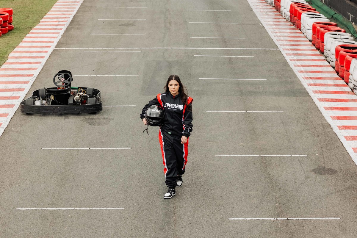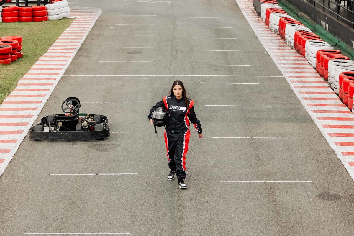 ✨ Capacete na cabeça, brilho no olhar e o kart rugindo! Clara mostrou que é pura velocidade e charme.