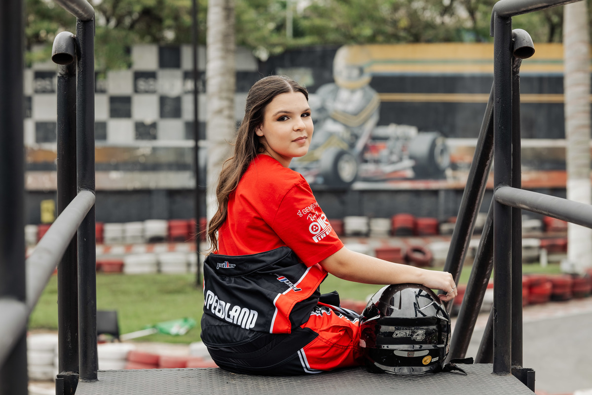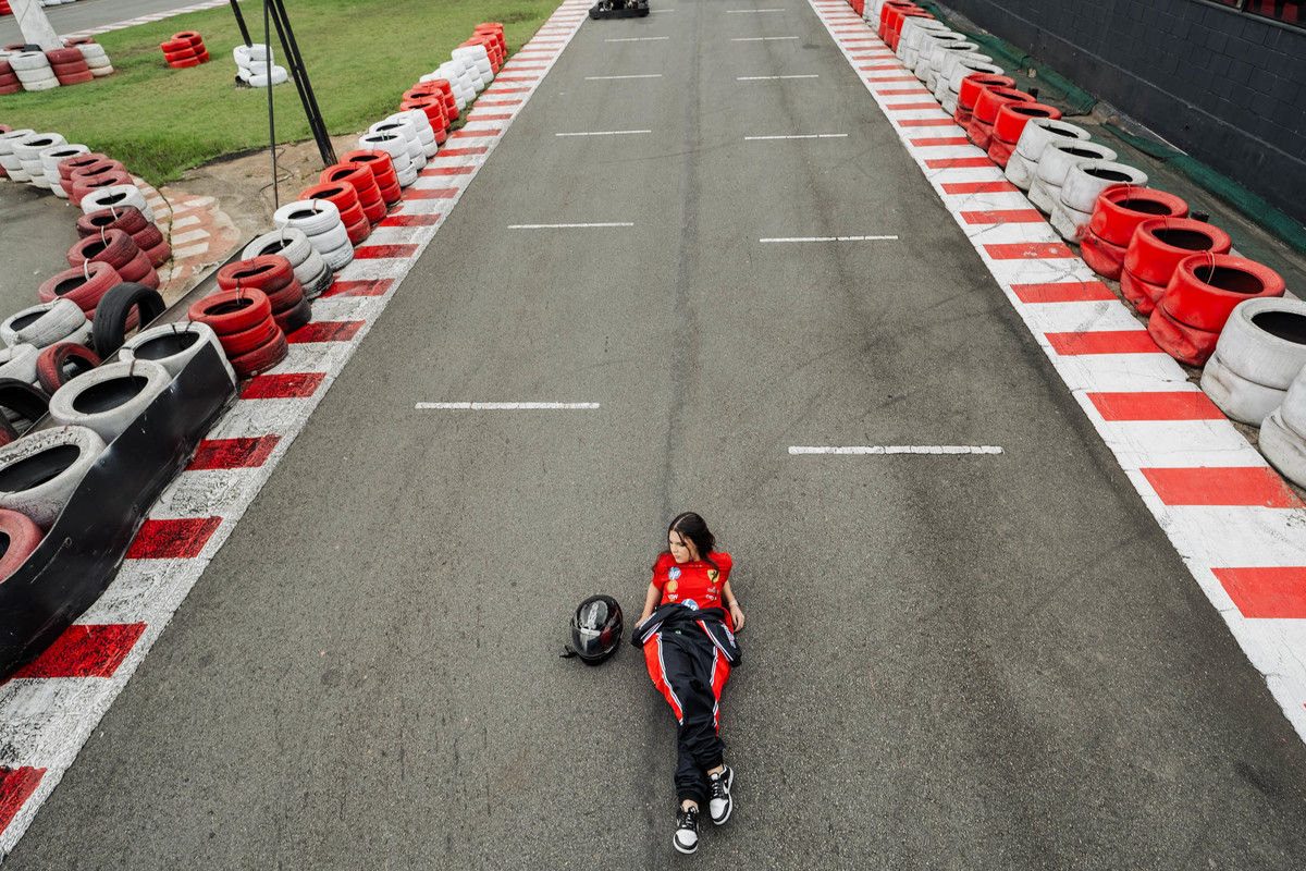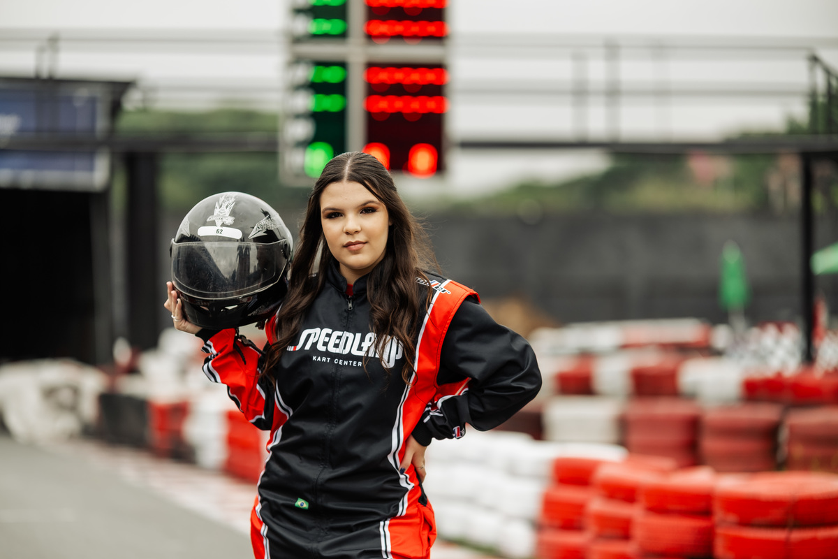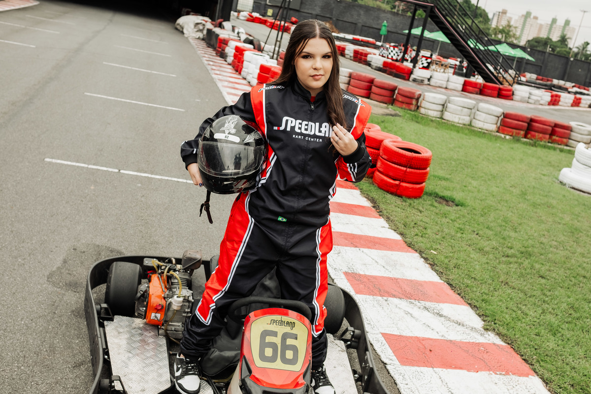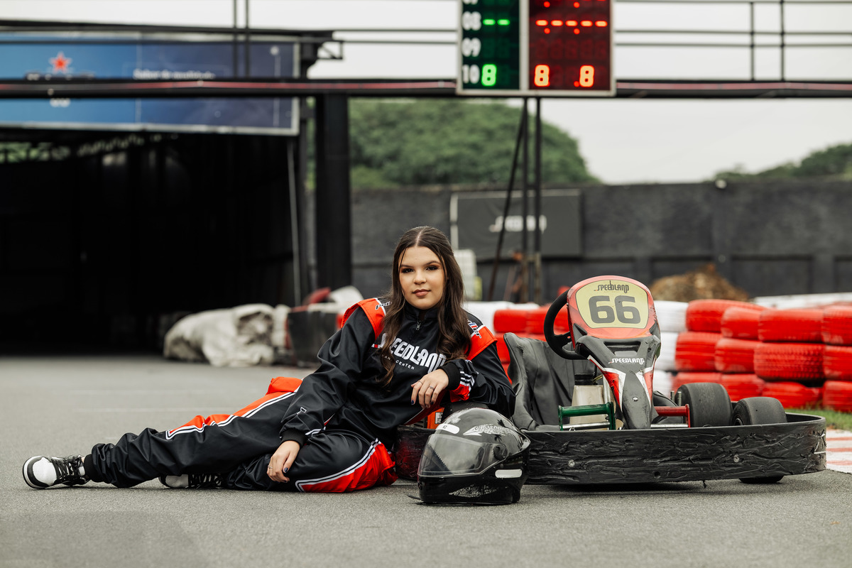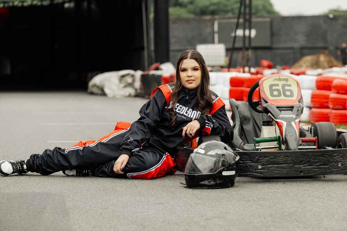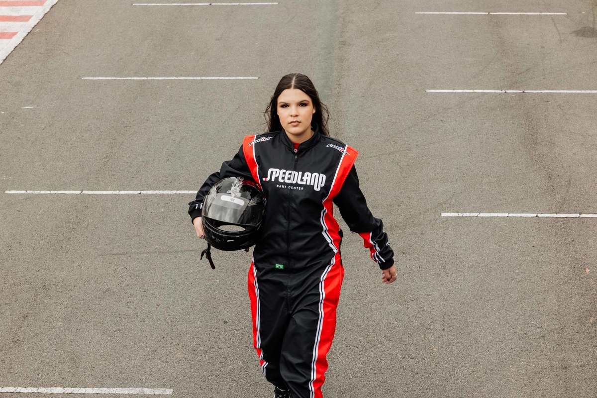 ✨ Capacete na cabeça, brilho no olhar e o kart rugindo! Clara mostrou que é pura velocidade e charme.