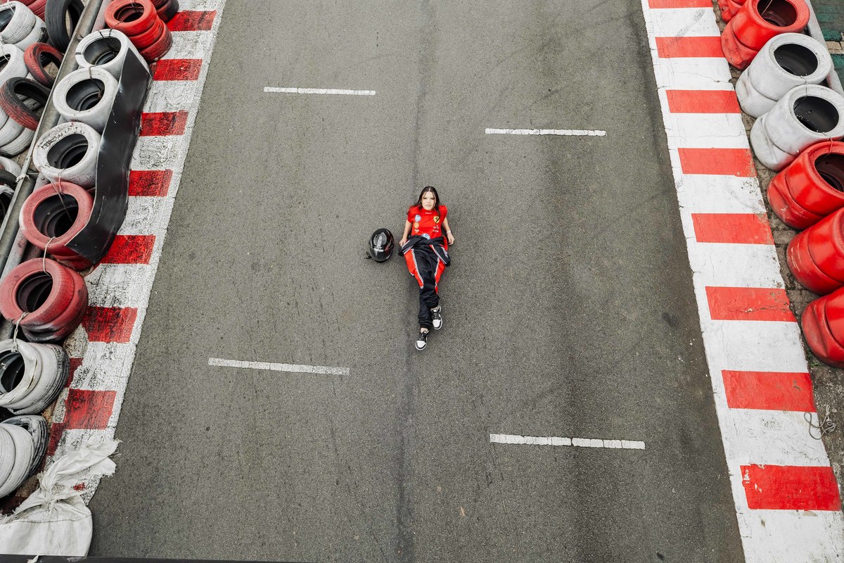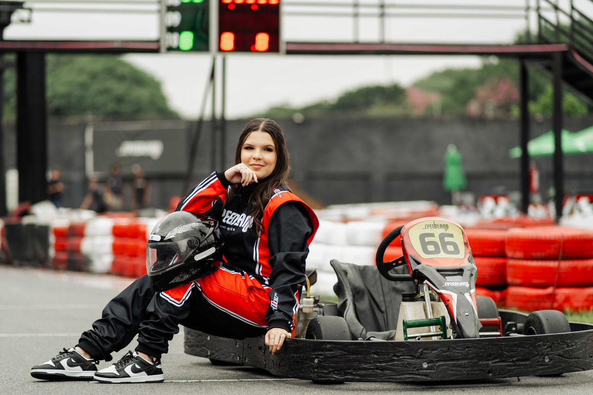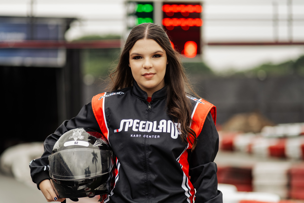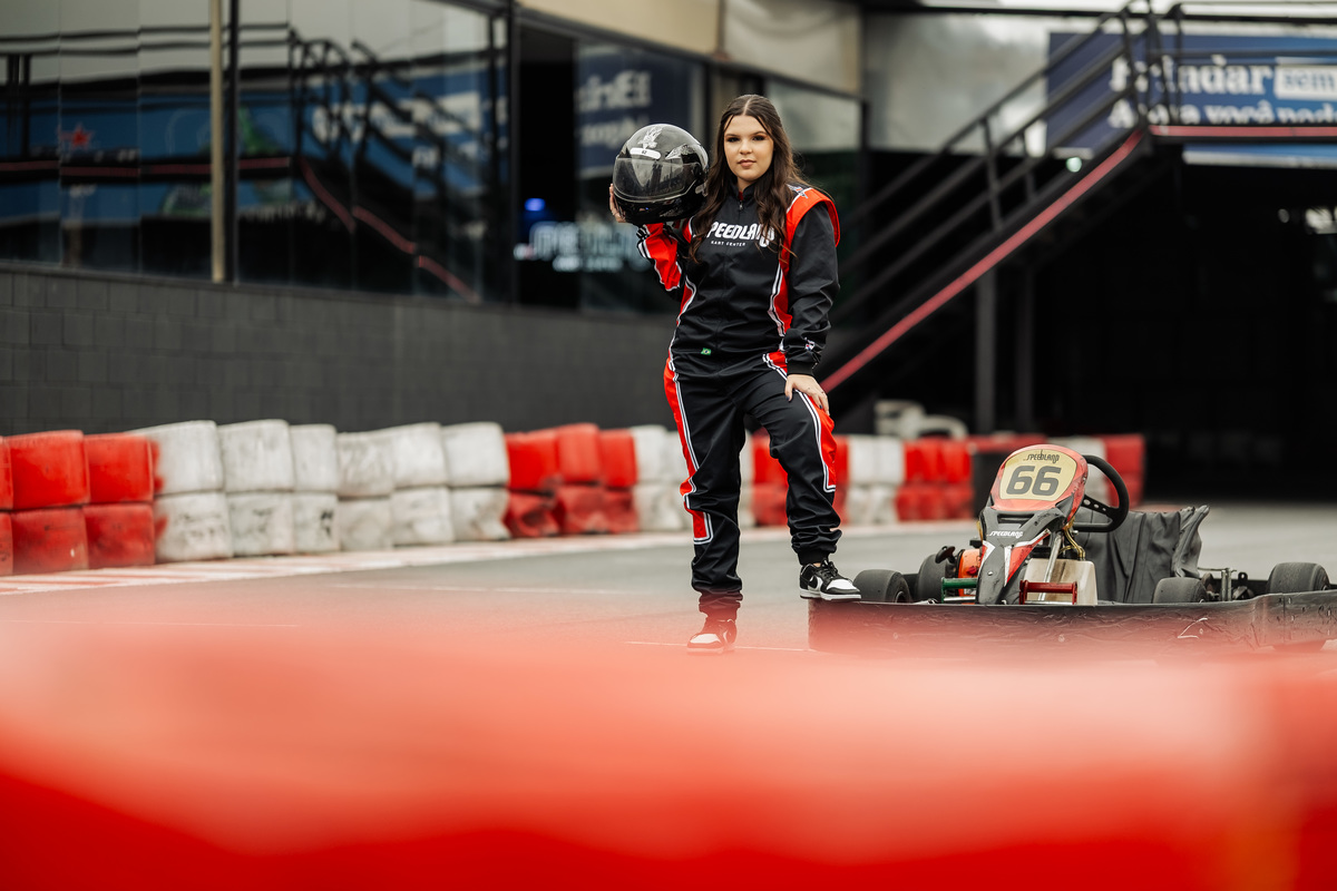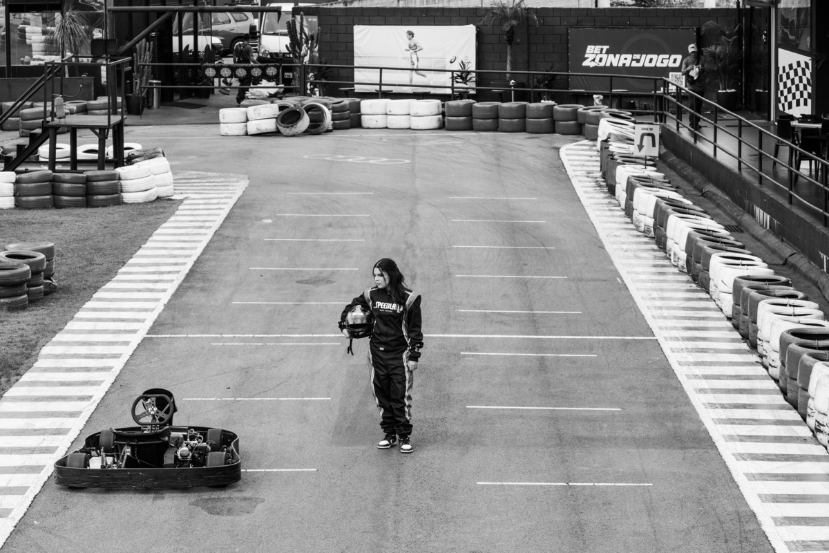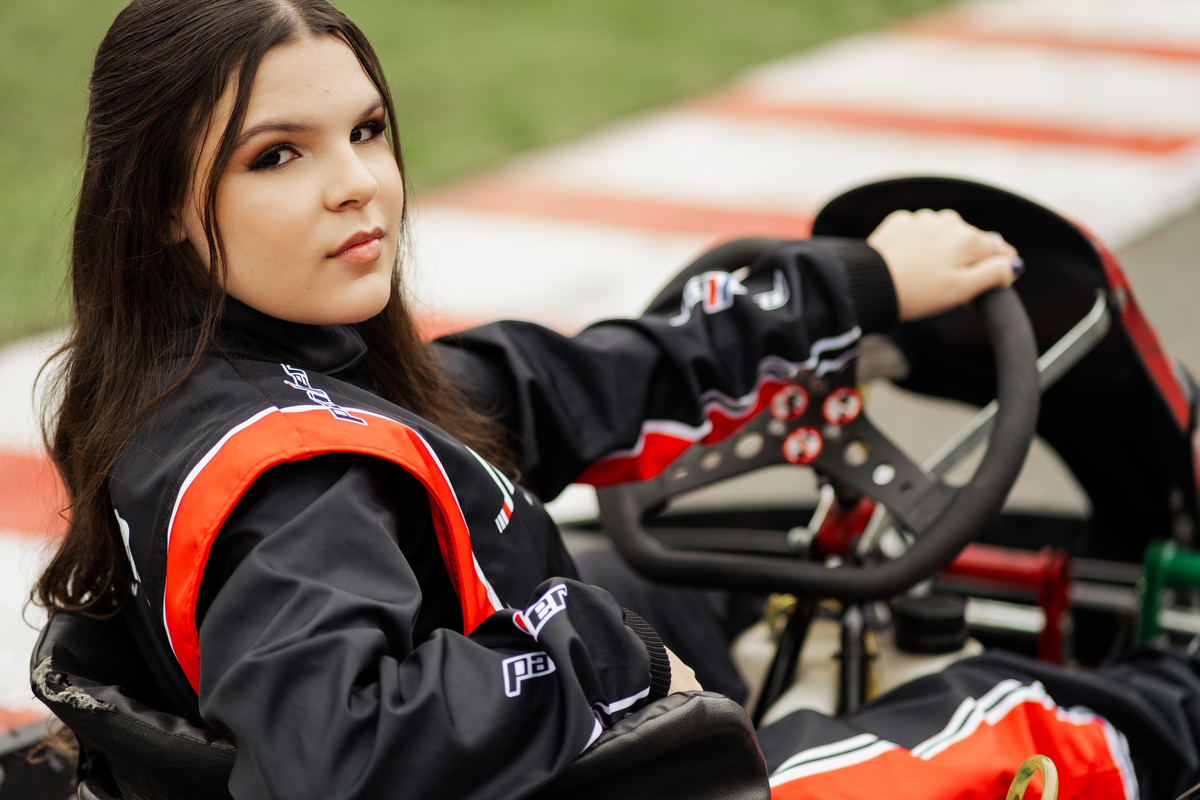✨ Capacete na cabeça, brilho no olhar e o kart rugindo! Clara mostrou que é pura velocidade e charme.