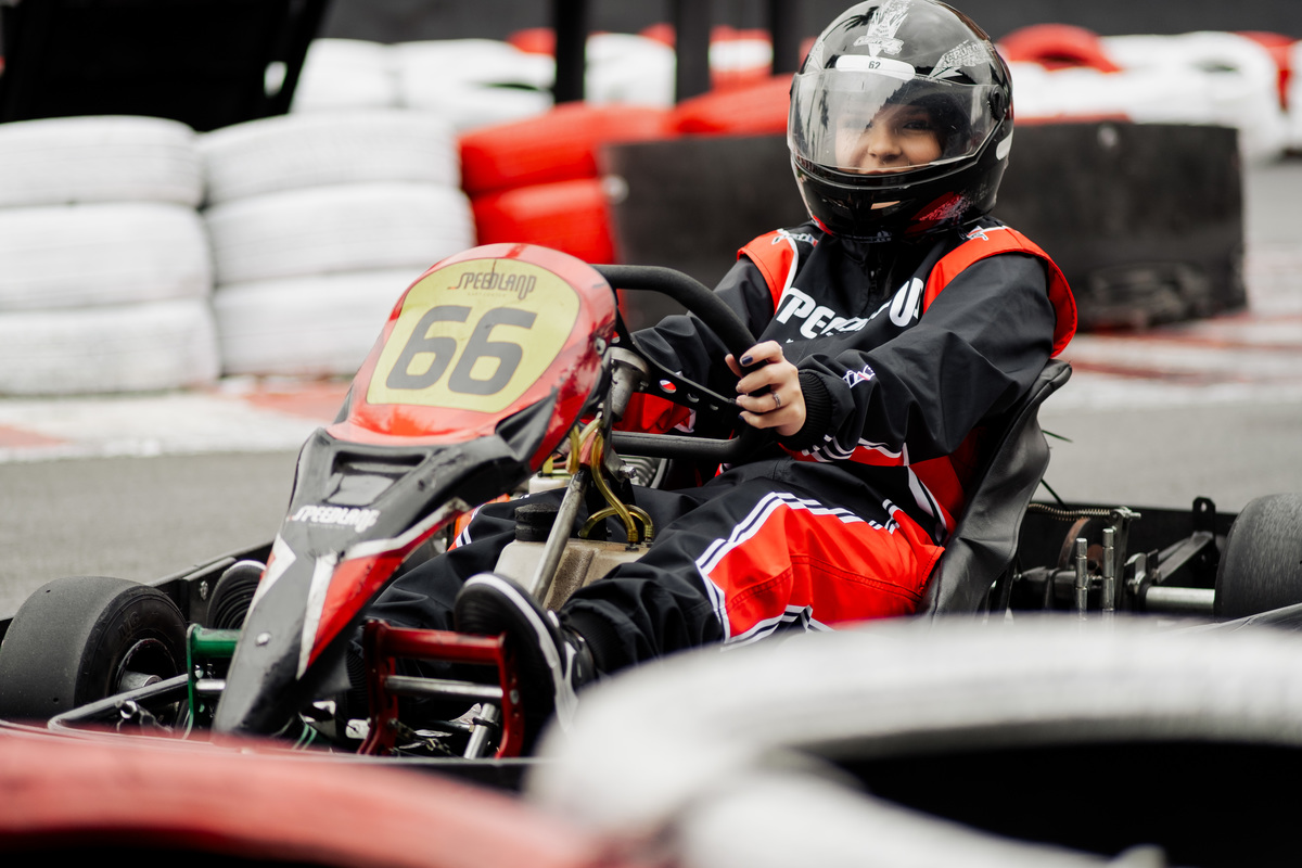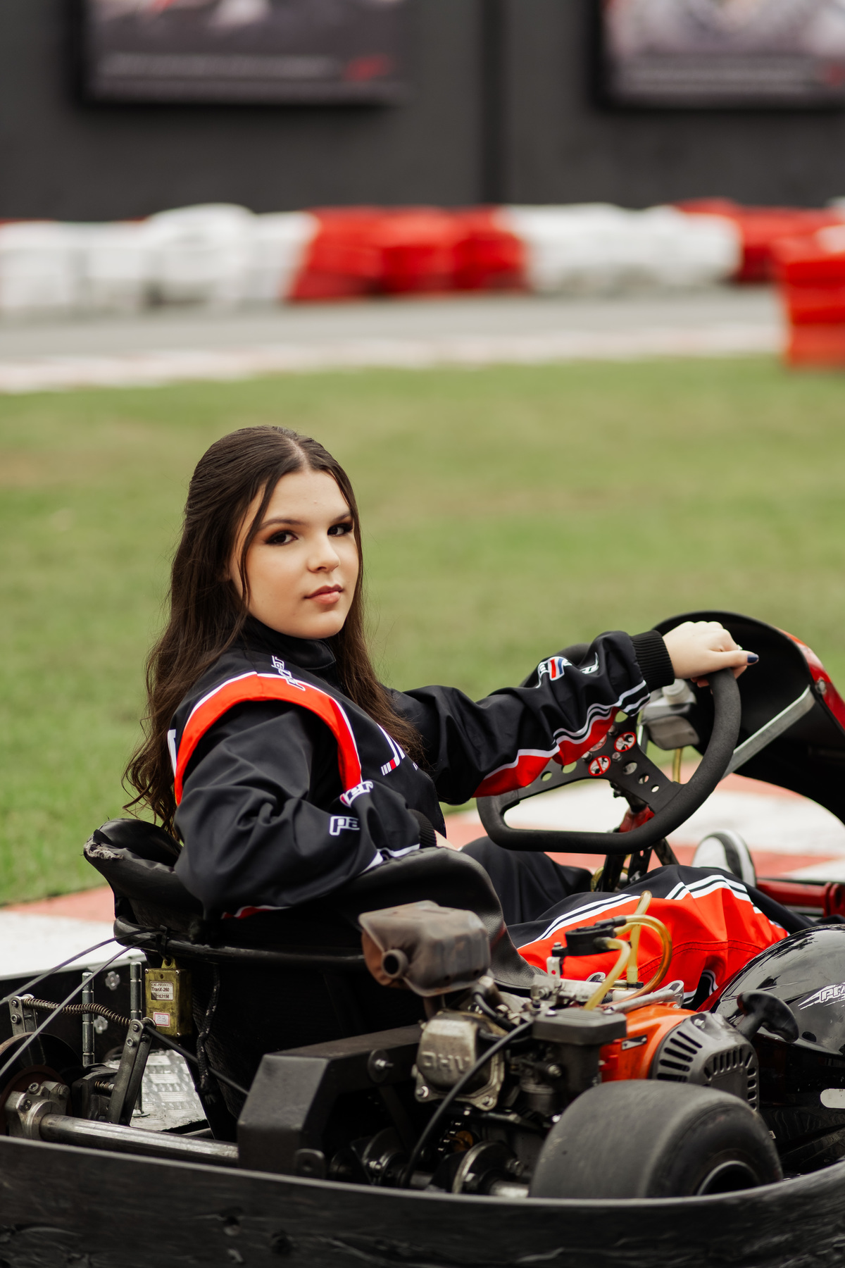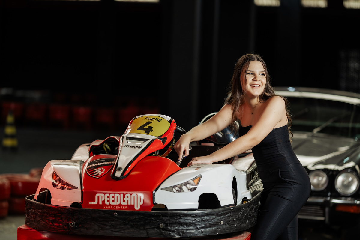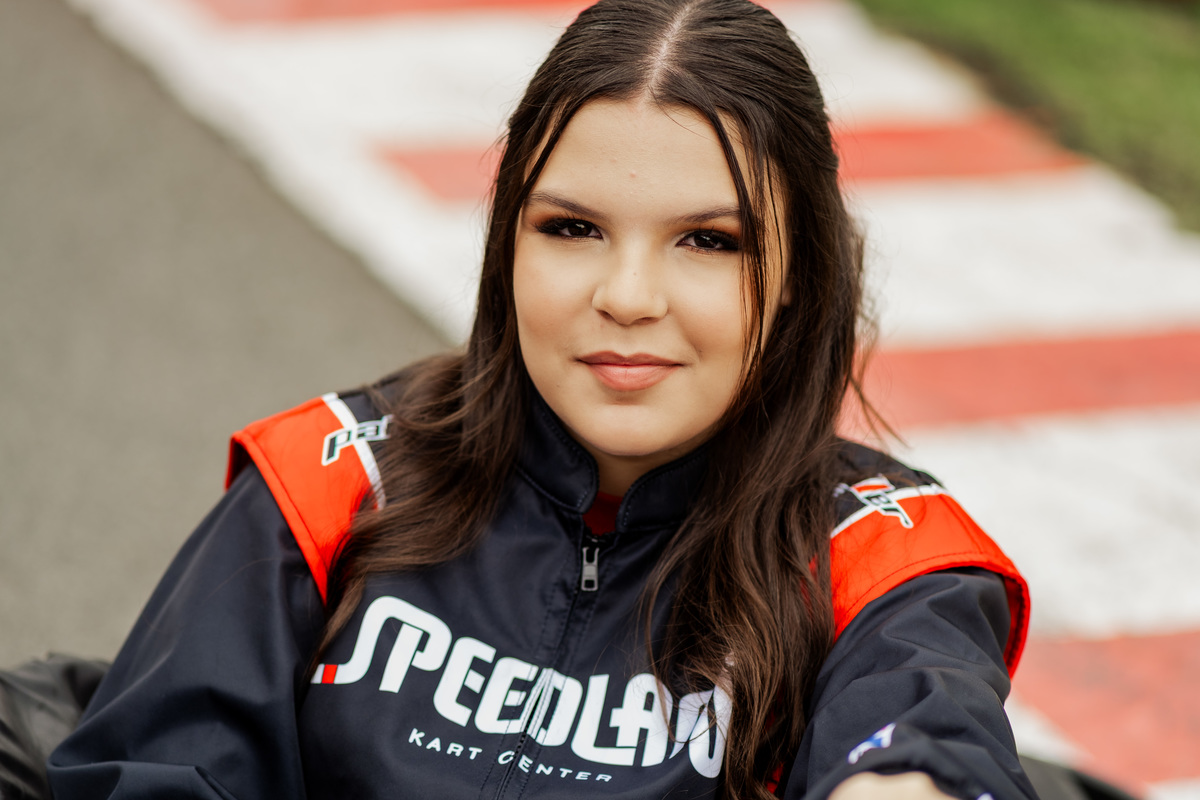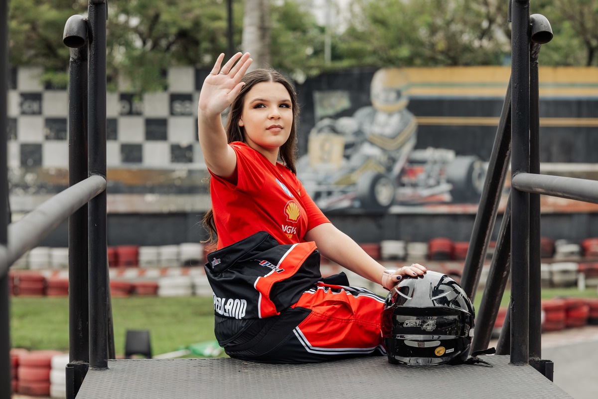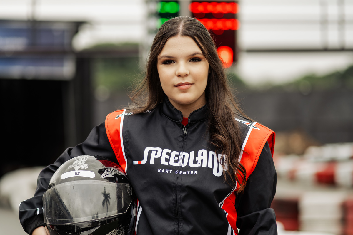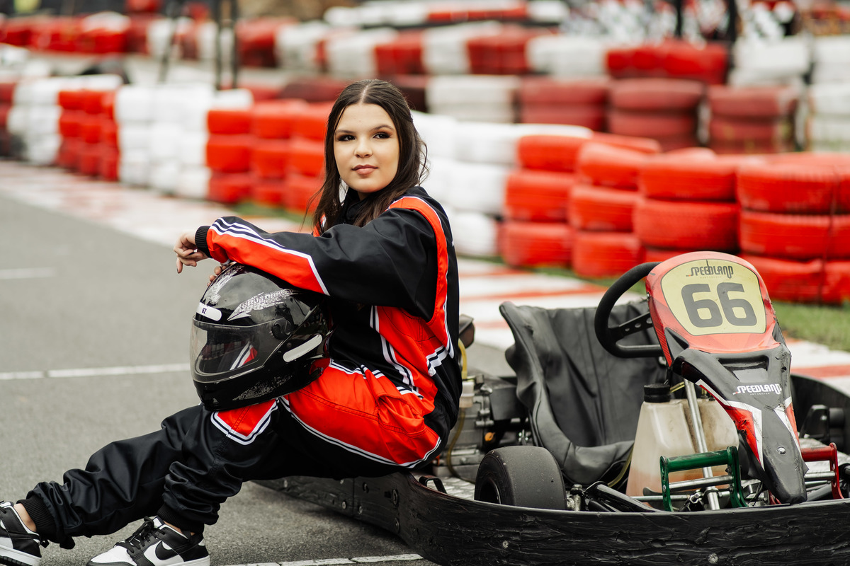 ✨ Capacete na cabeça, brilho no olhar e o kart rugindo! Clara mostrou que é pura velocidade e charme.