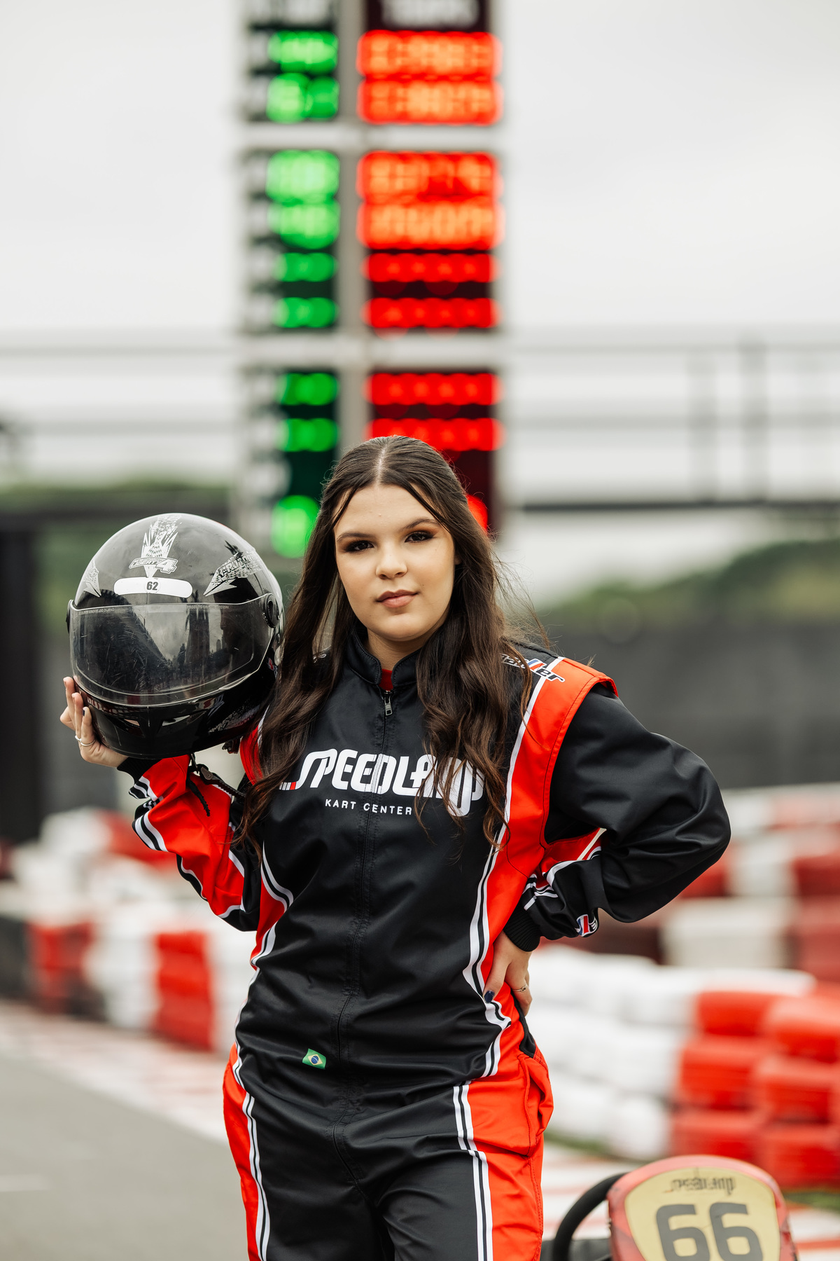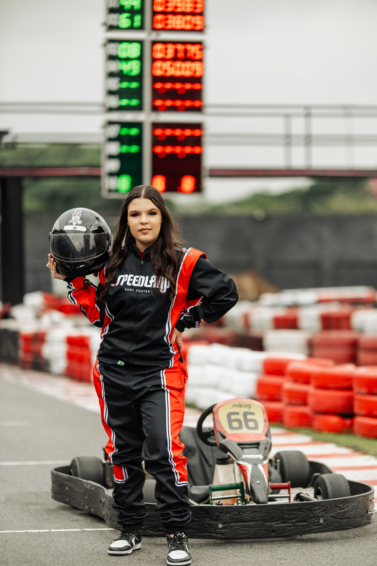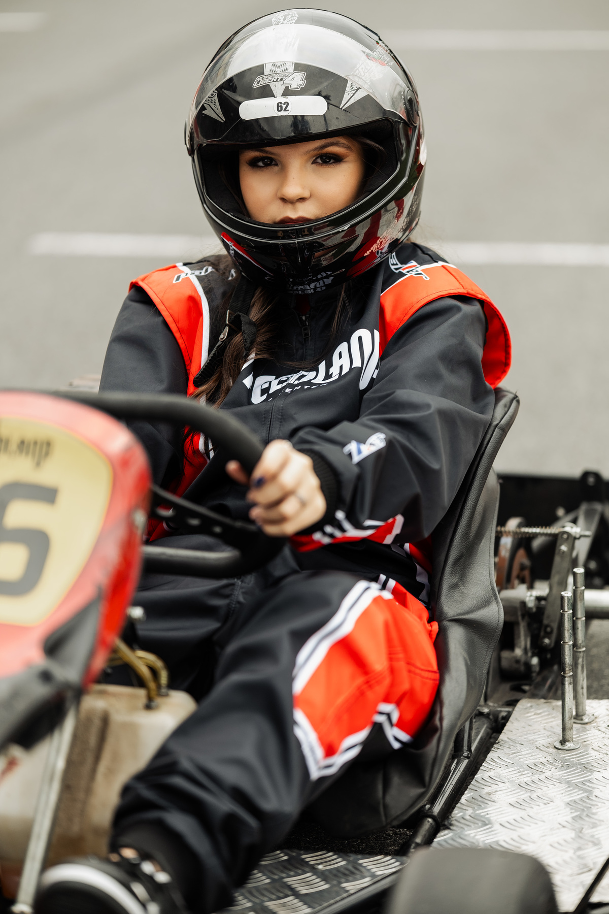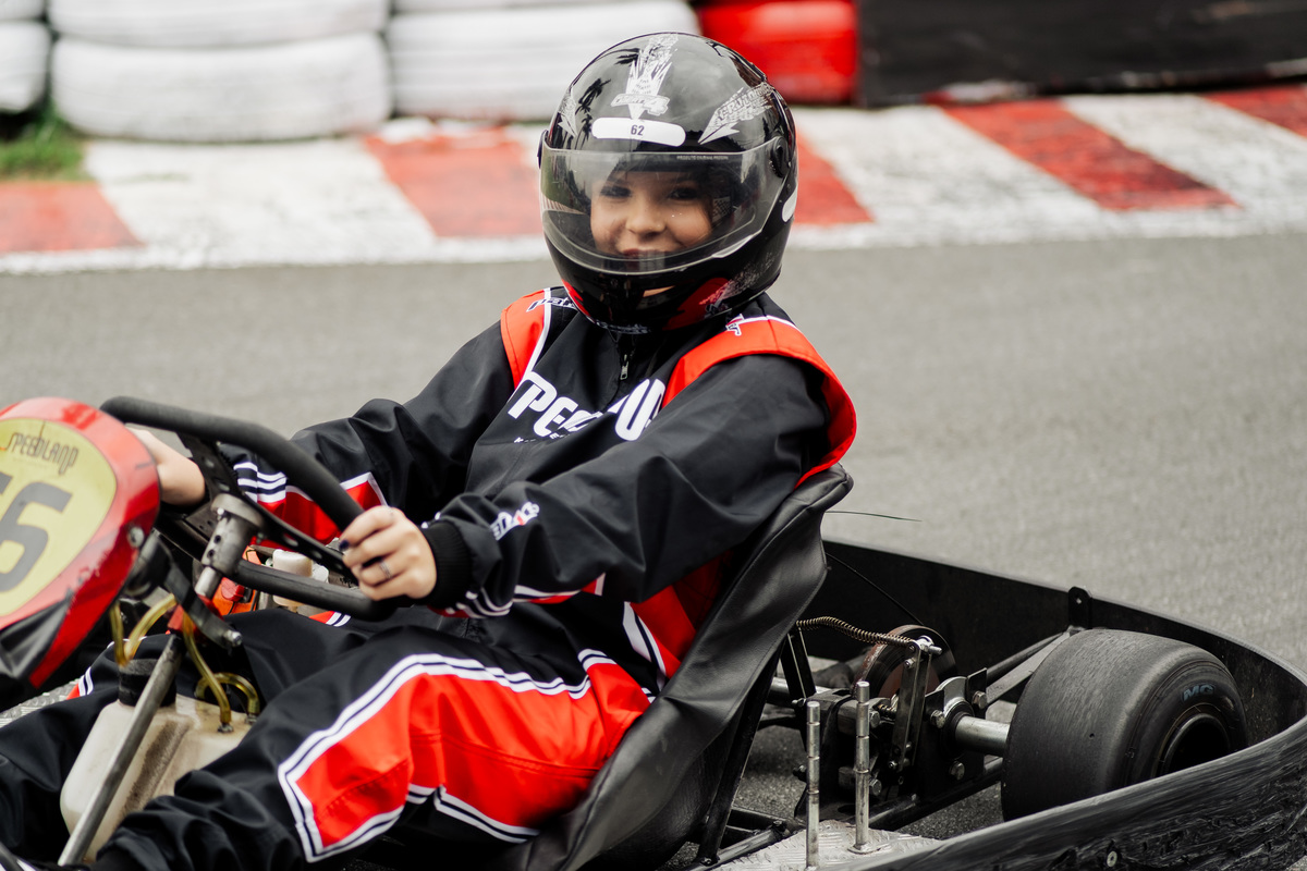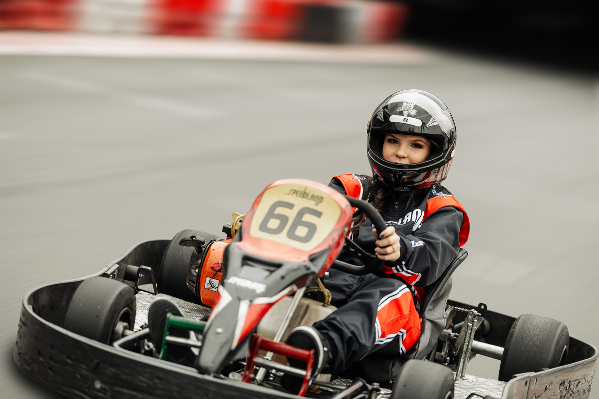 ✨ Capacete na cabeça, brilho no olhar e o kart rugindo! Clara mostrou que é pura velocidade e charme.