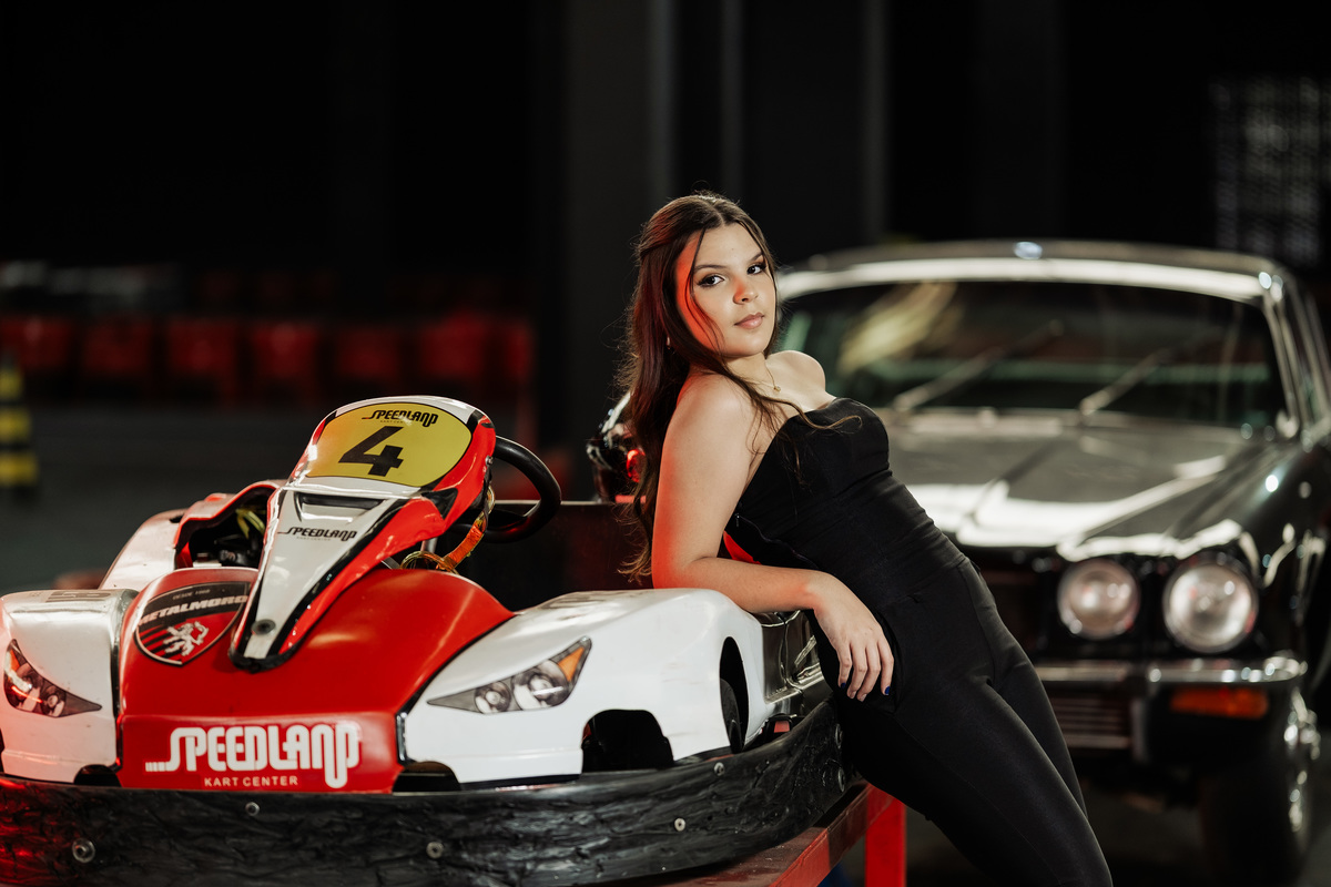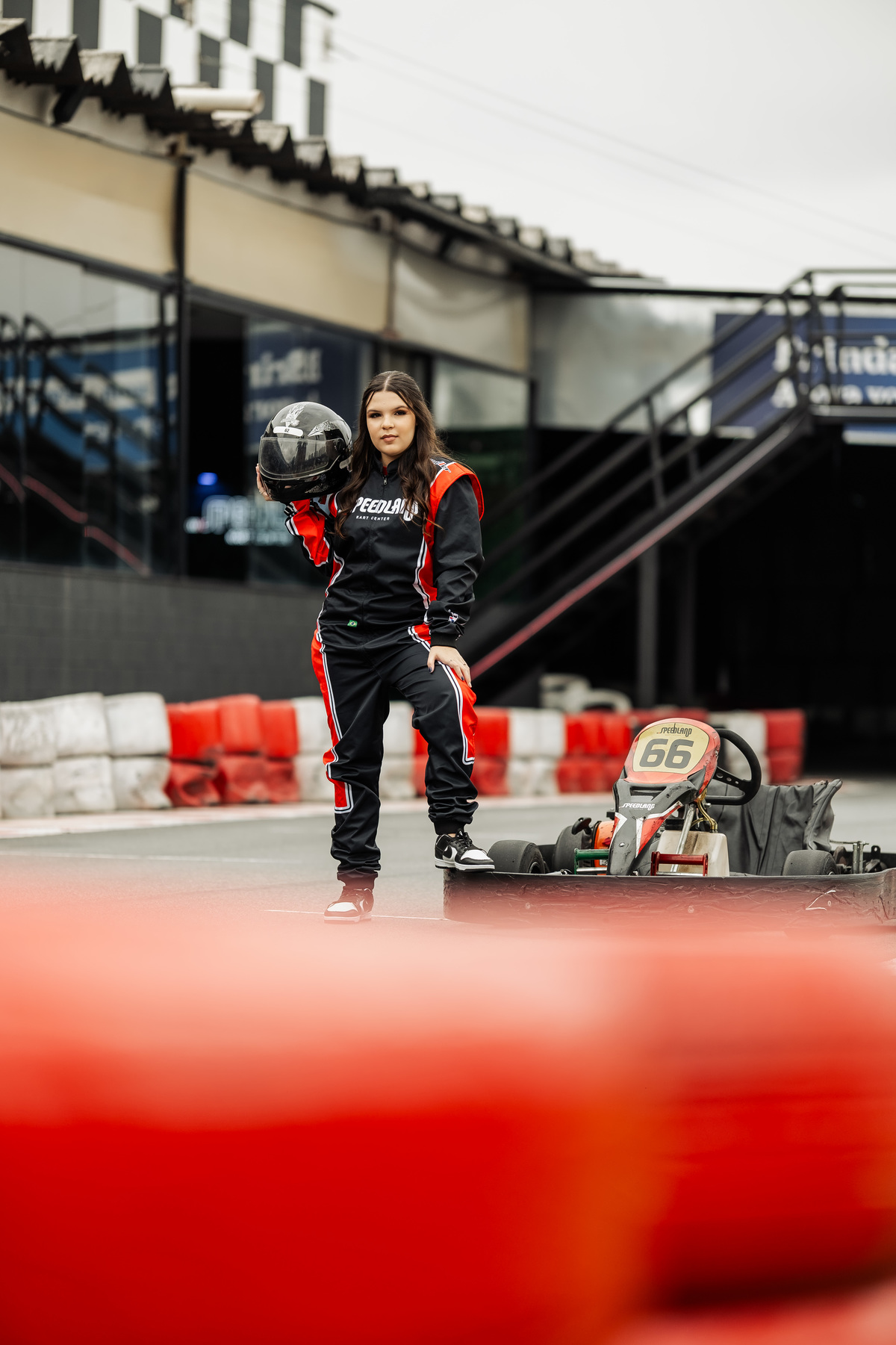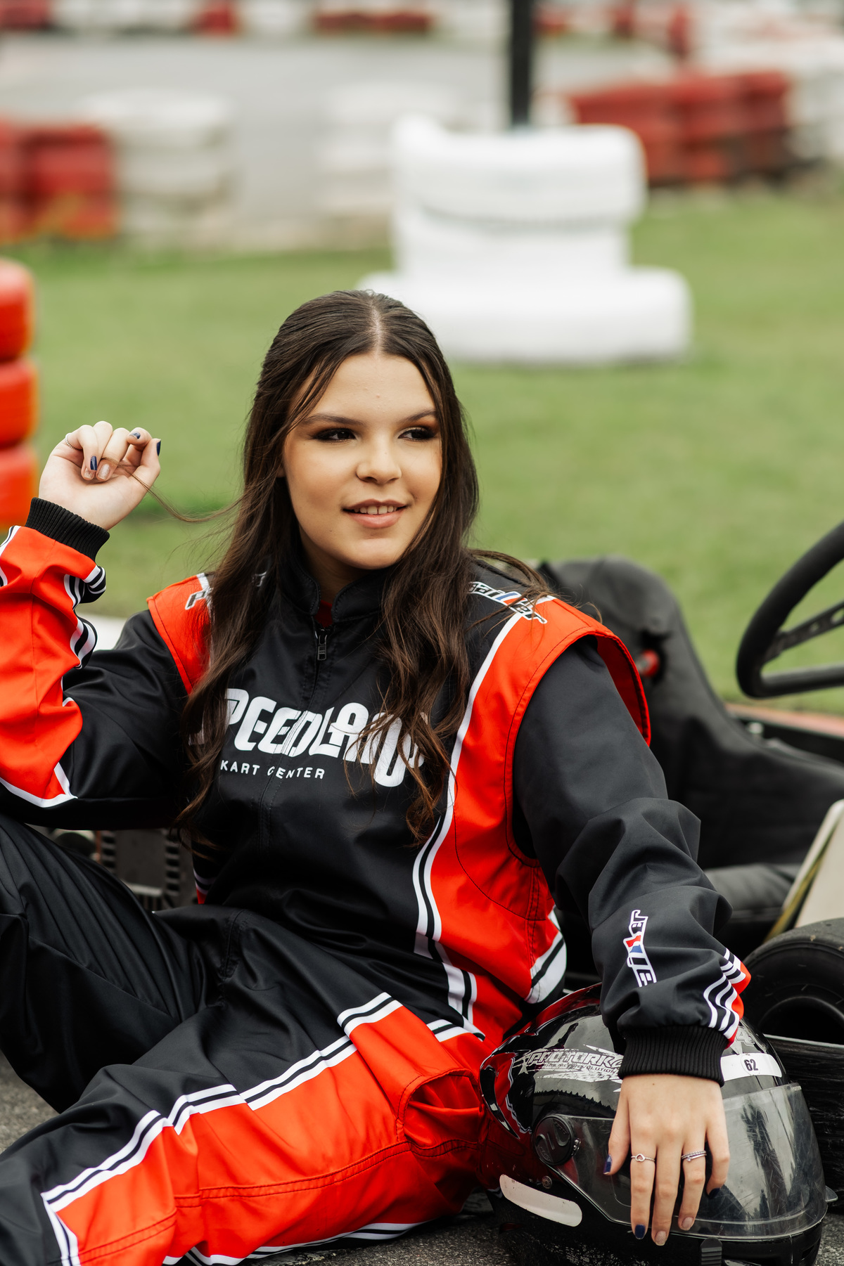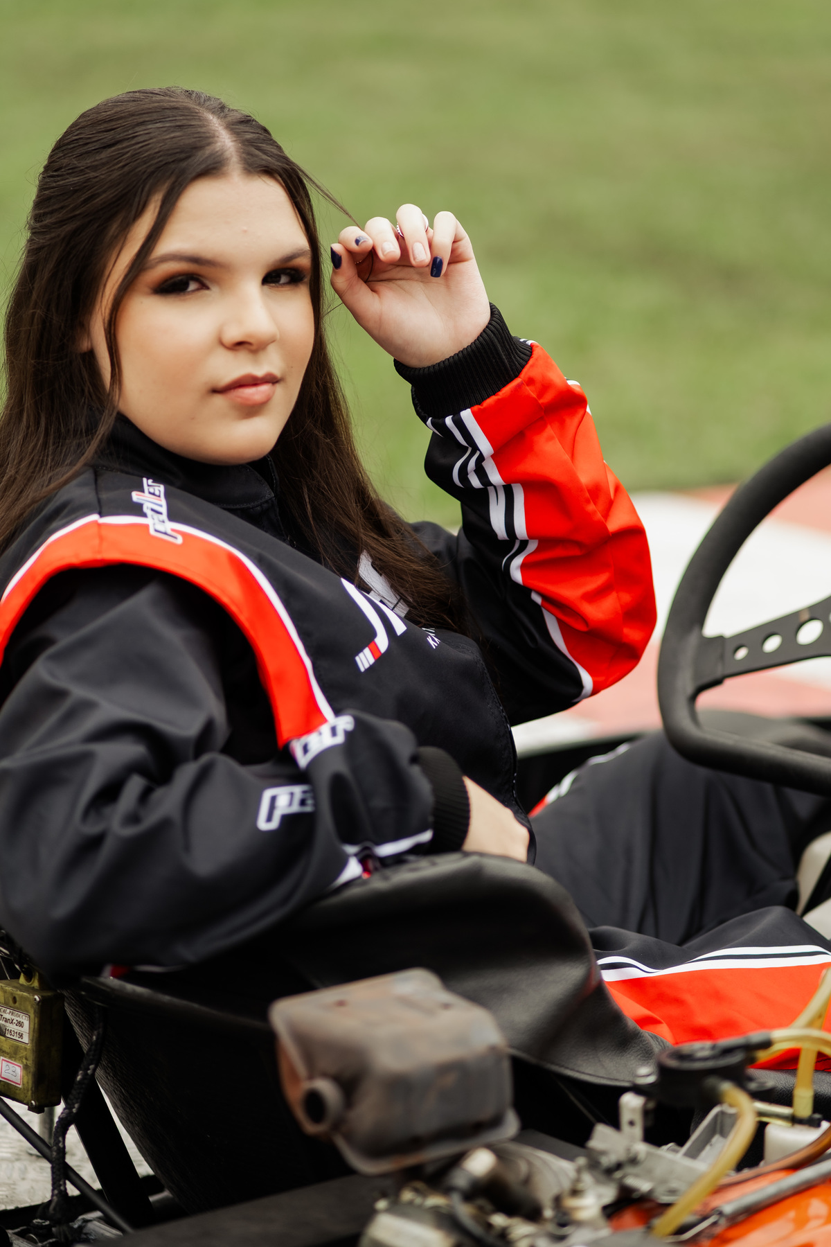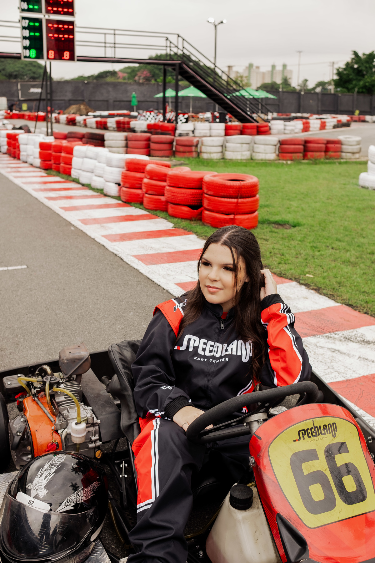 ✨ Capacete na cabeça, brilho no olhar e o kart rugindo! Clara mostrou que é pura velocidade e charme.