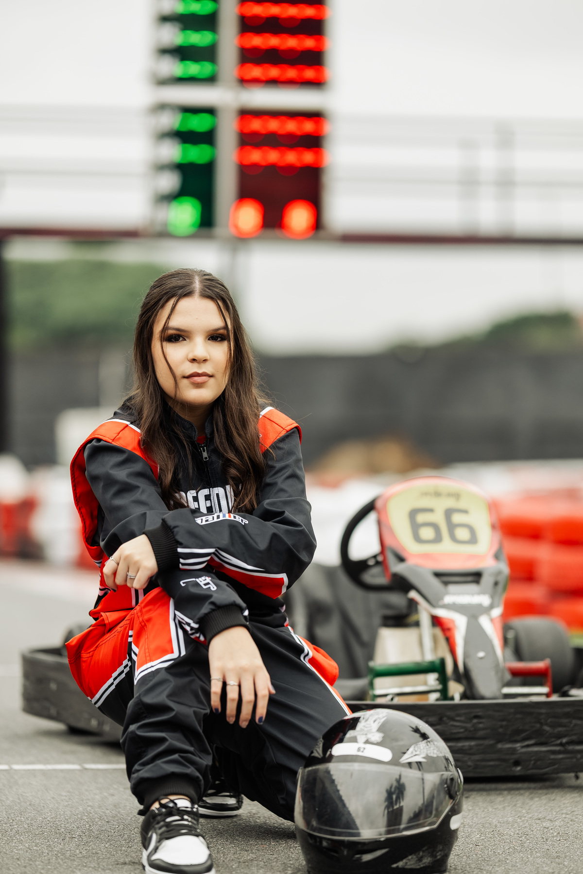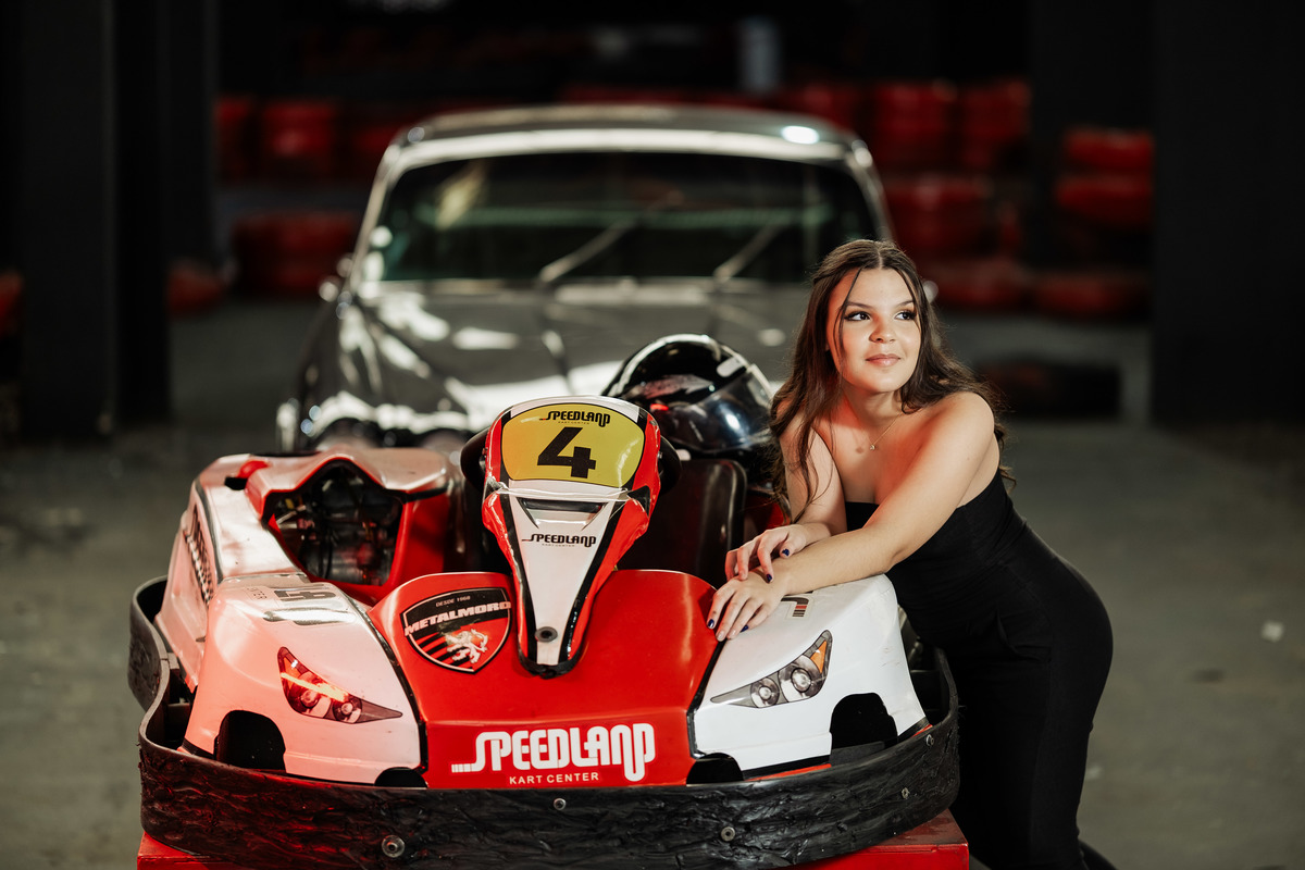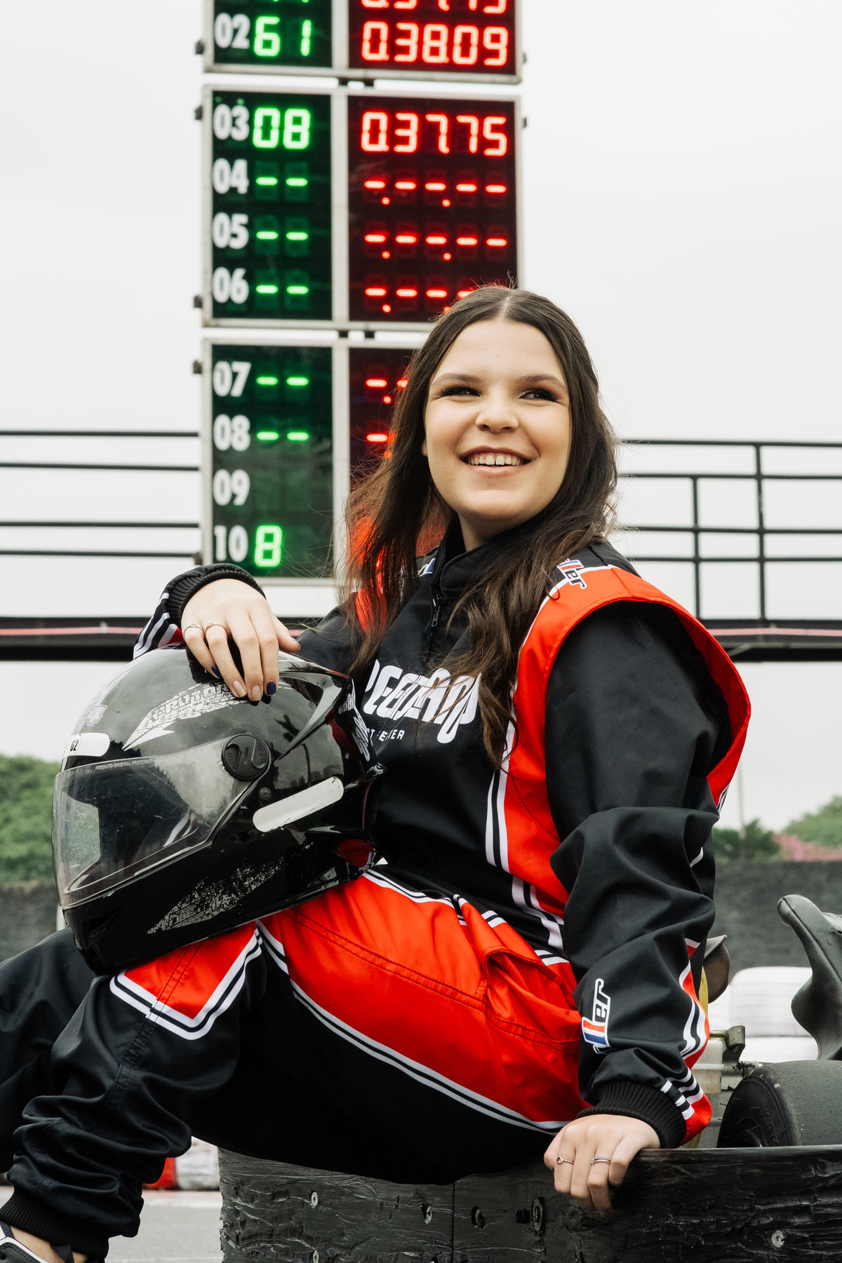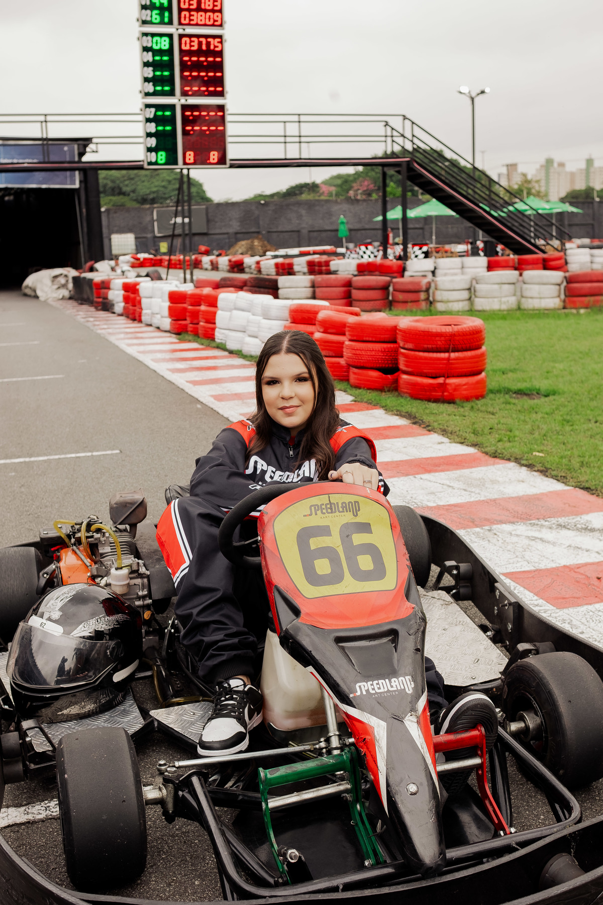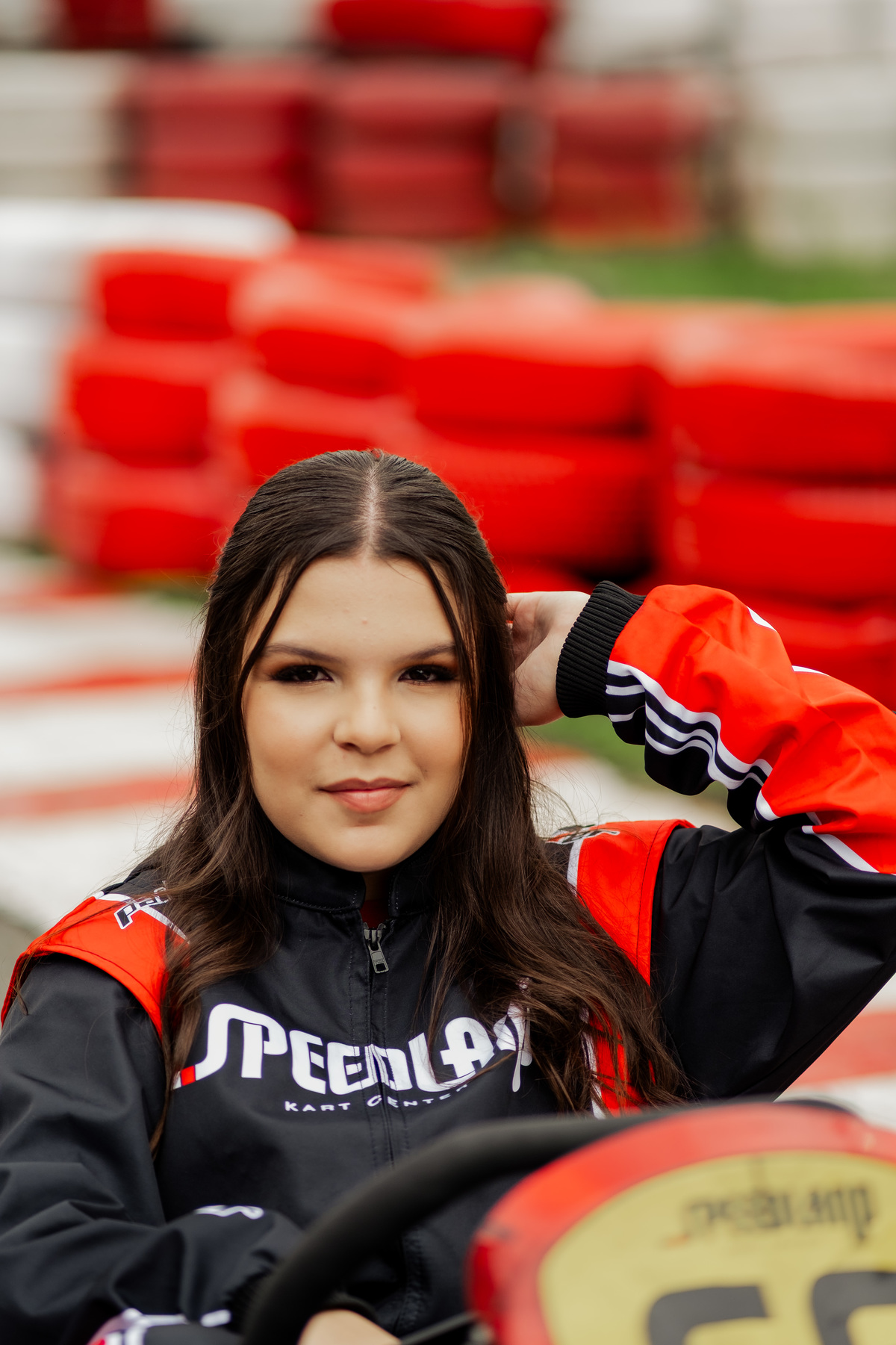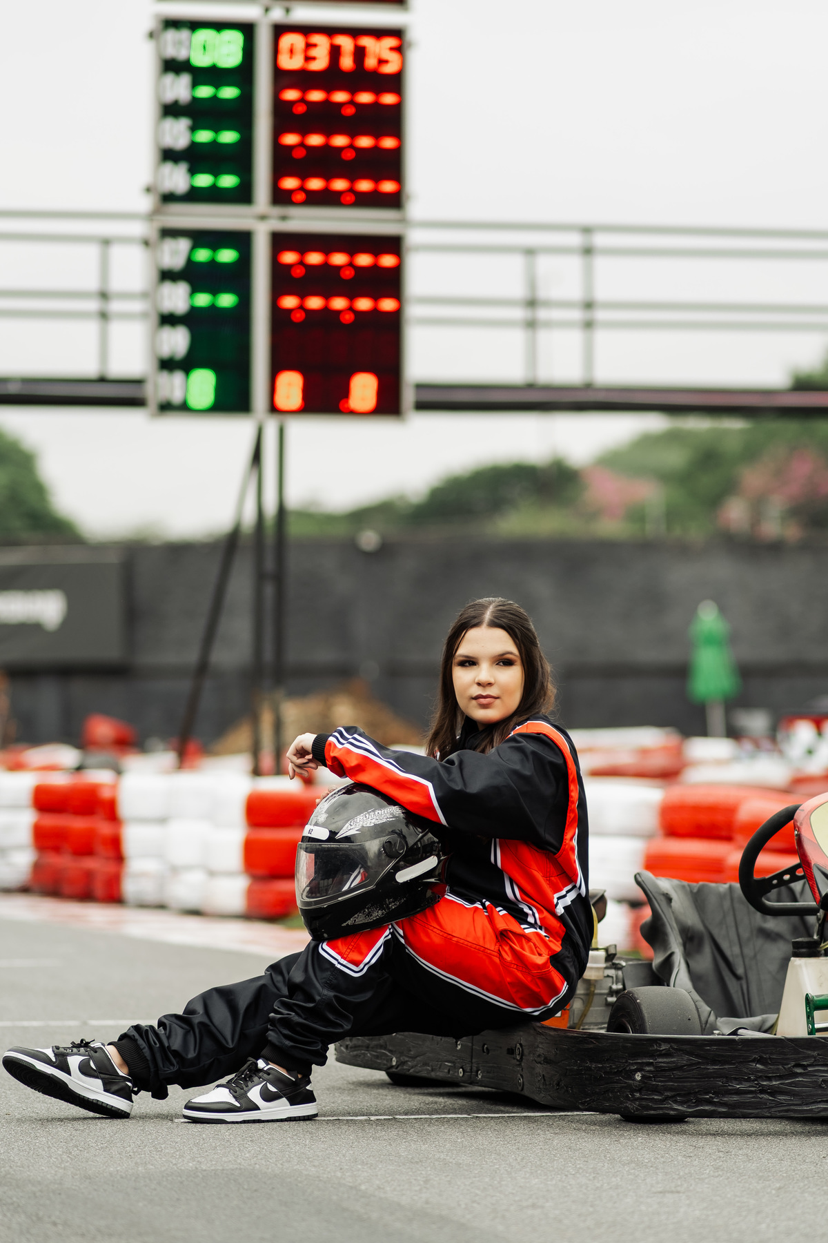 ✨ Capacete na cabeça, brilho no olhar e o kart rugindo! Clara mostrou que é pura velocidade e charme.