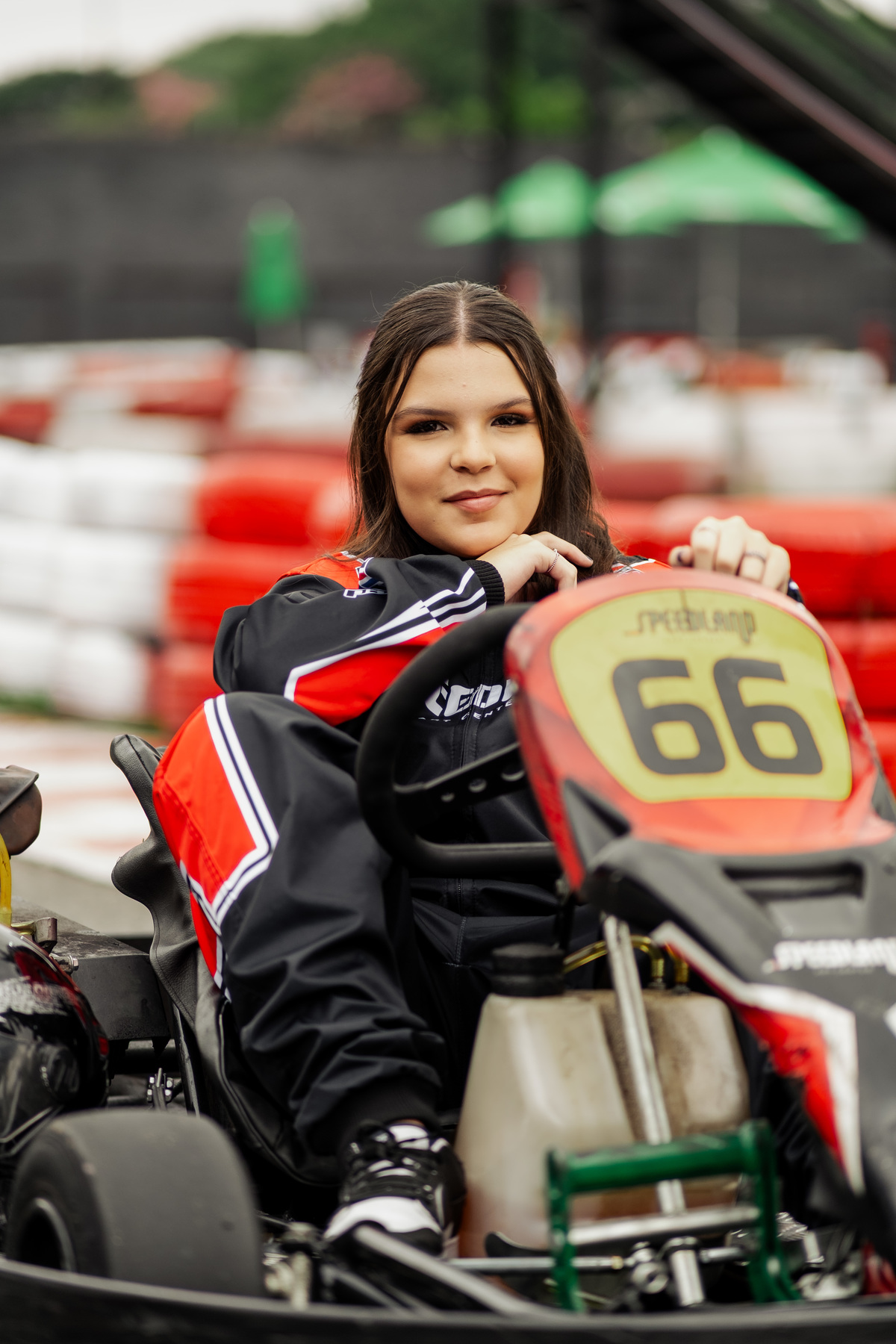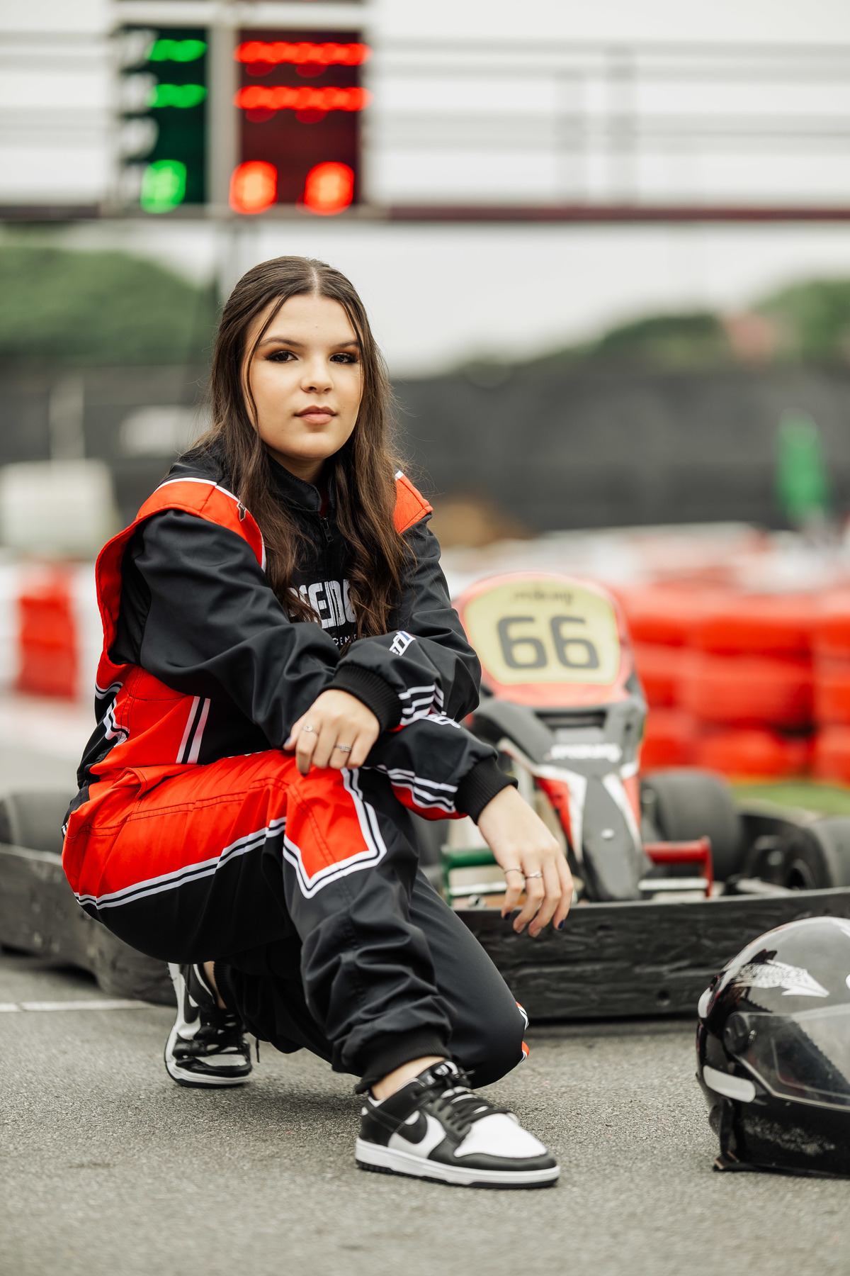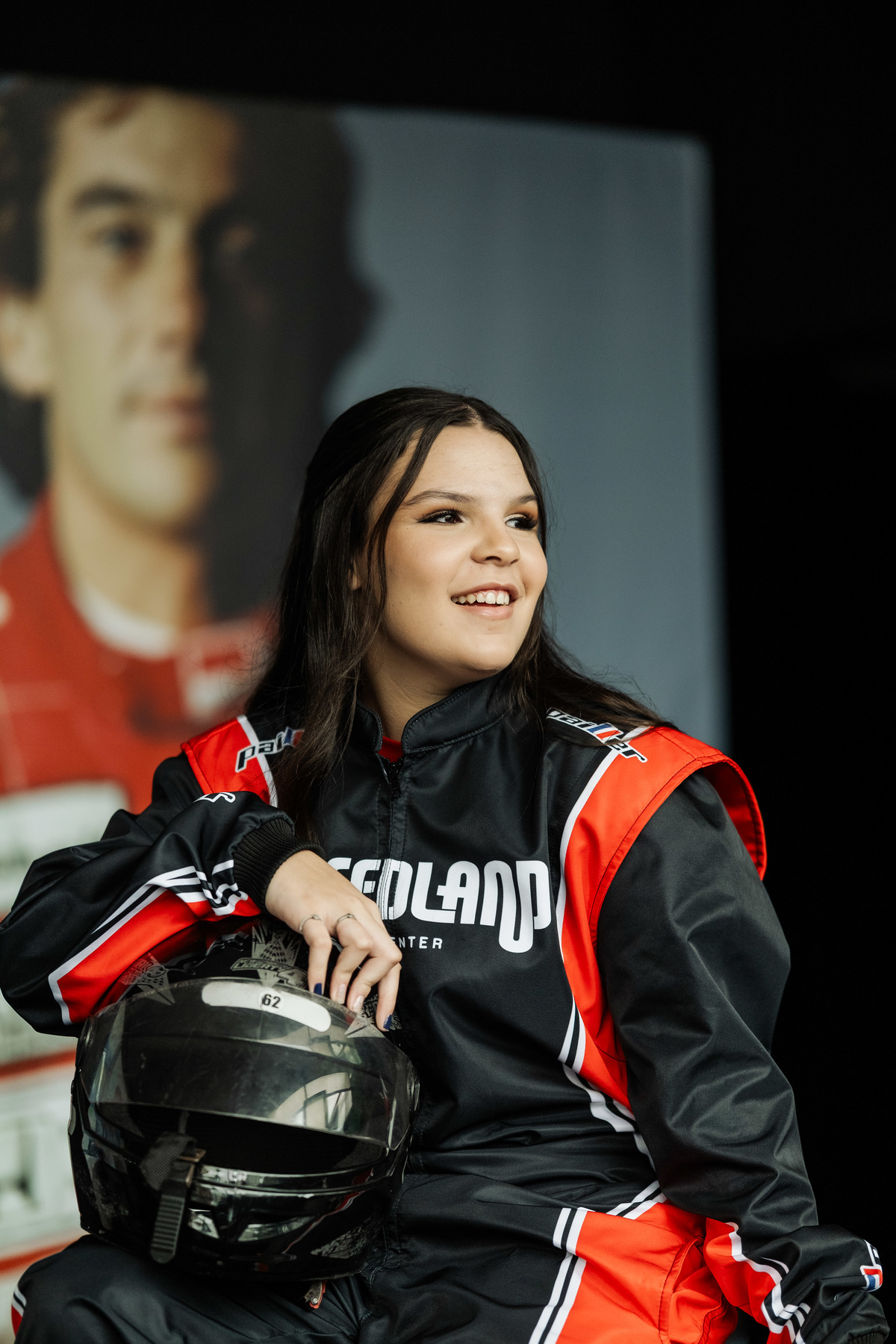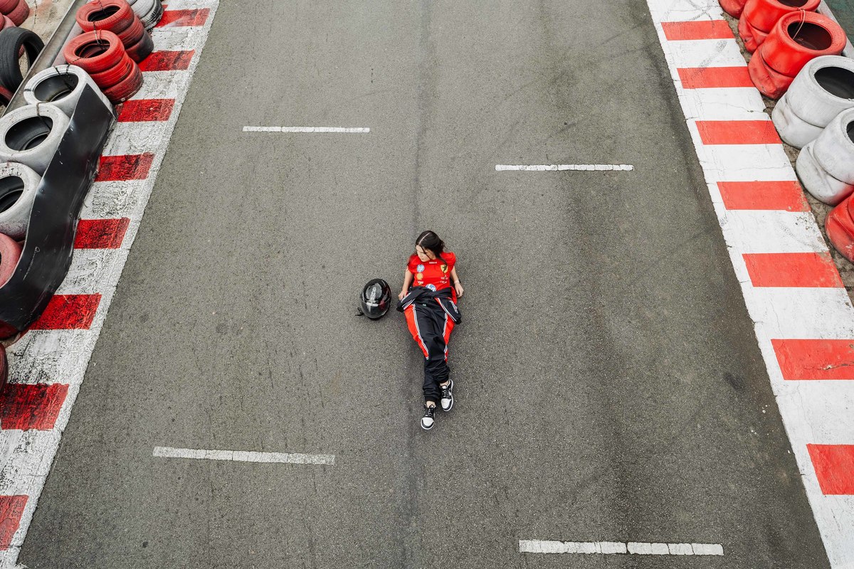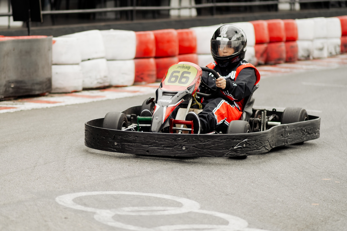 ✨ Capacete na cabeça, brilho no olhar e o kart rugindo! Clara mostrou que é pura velocidade e charme.