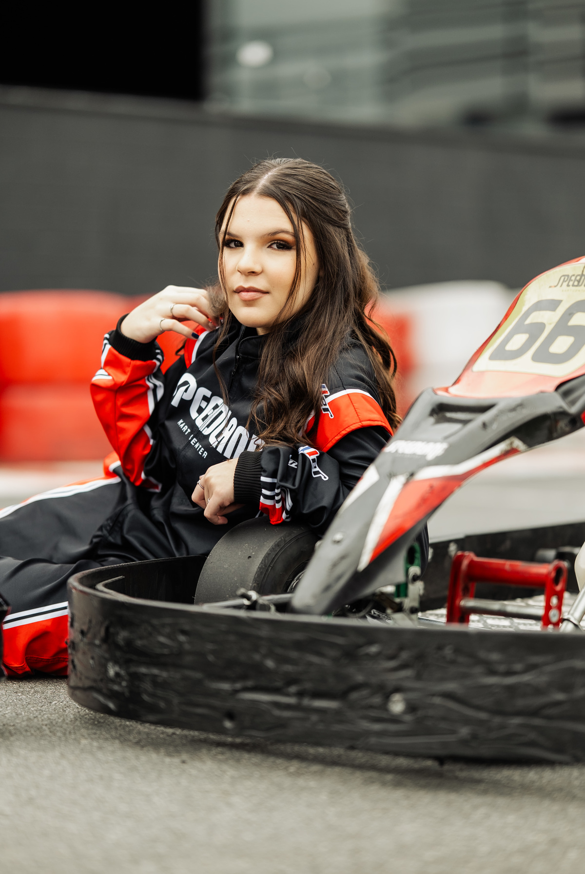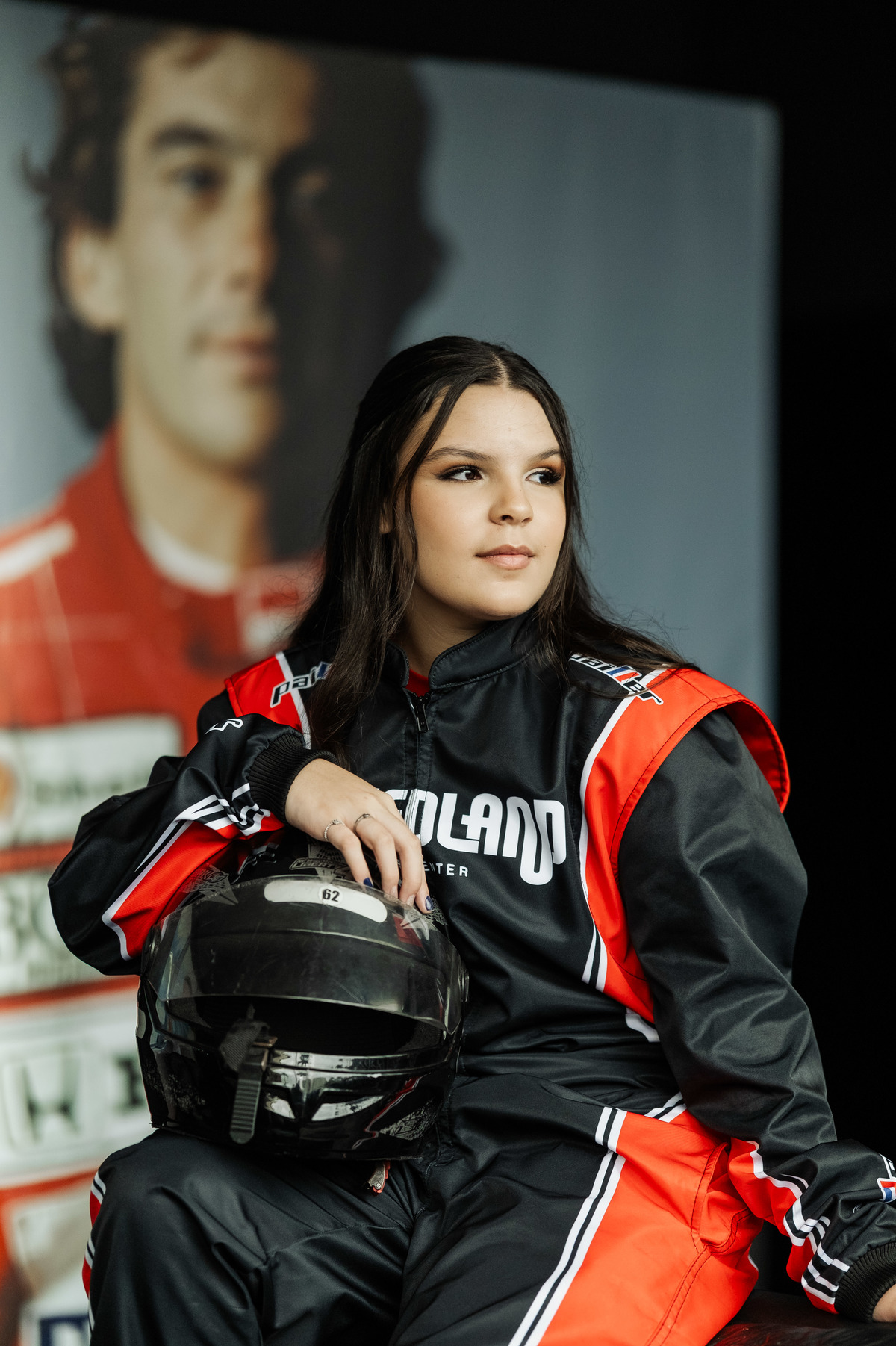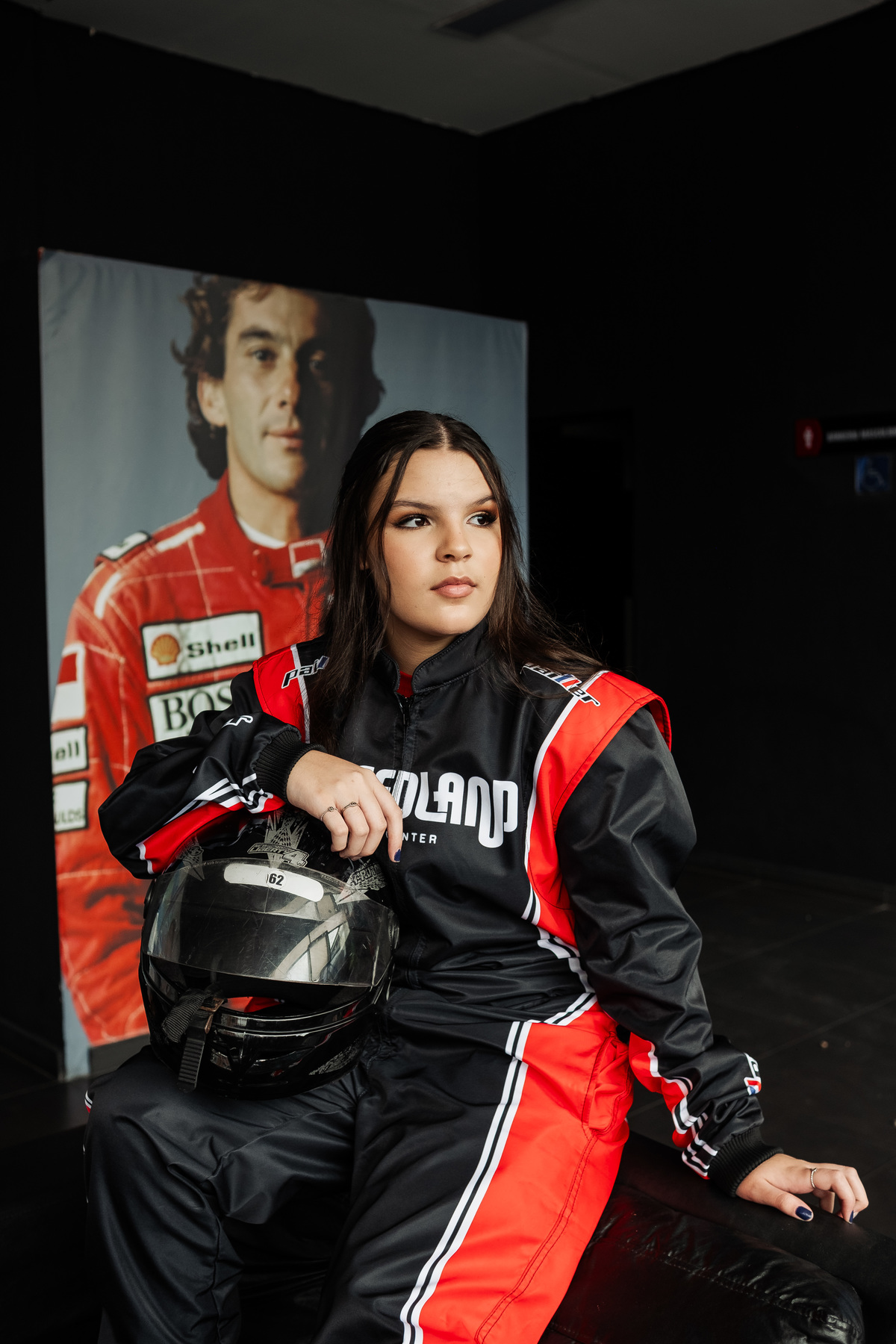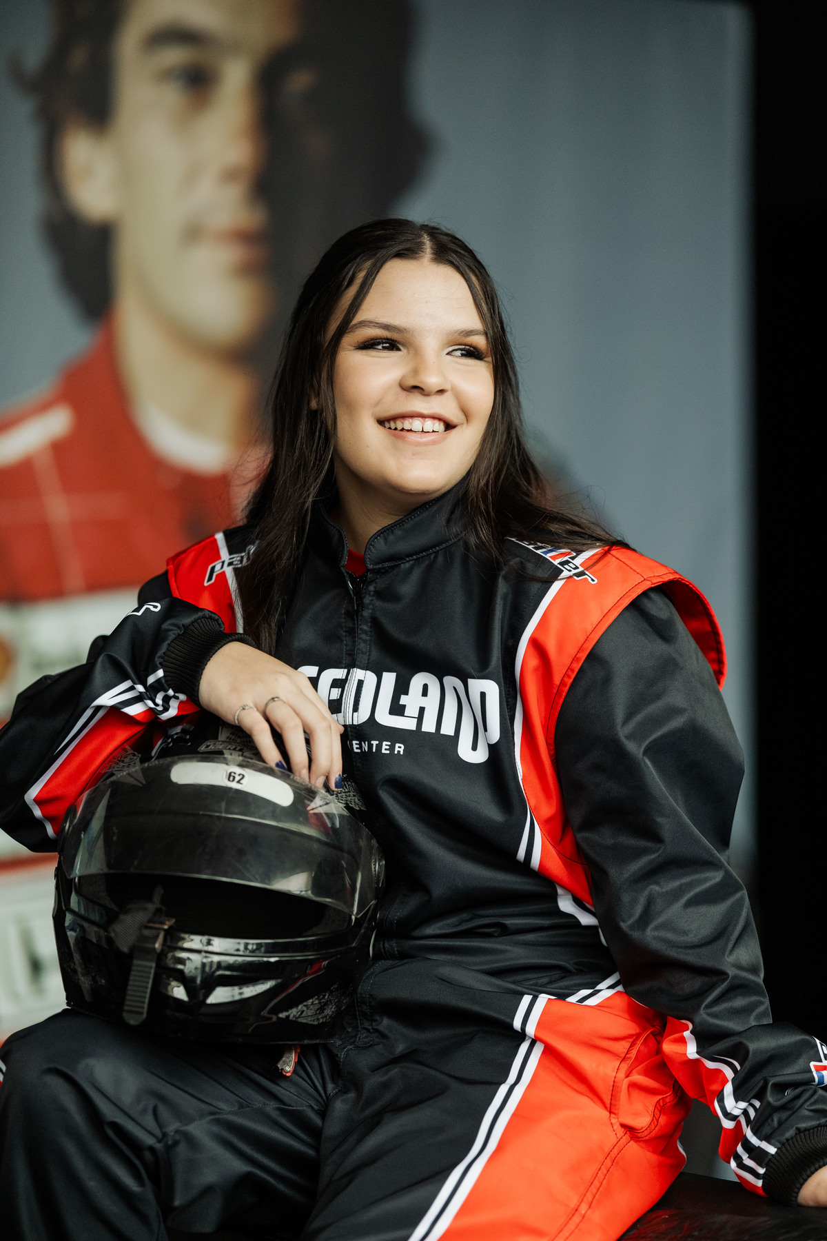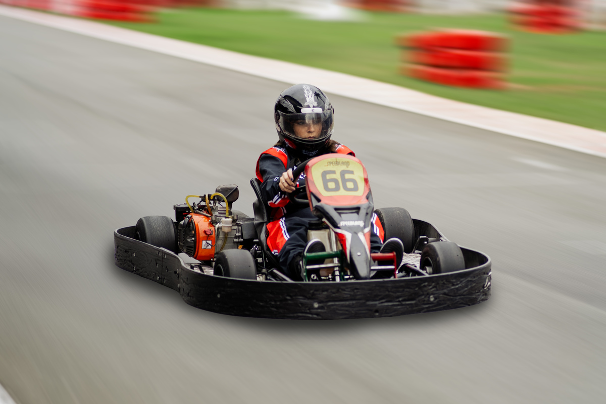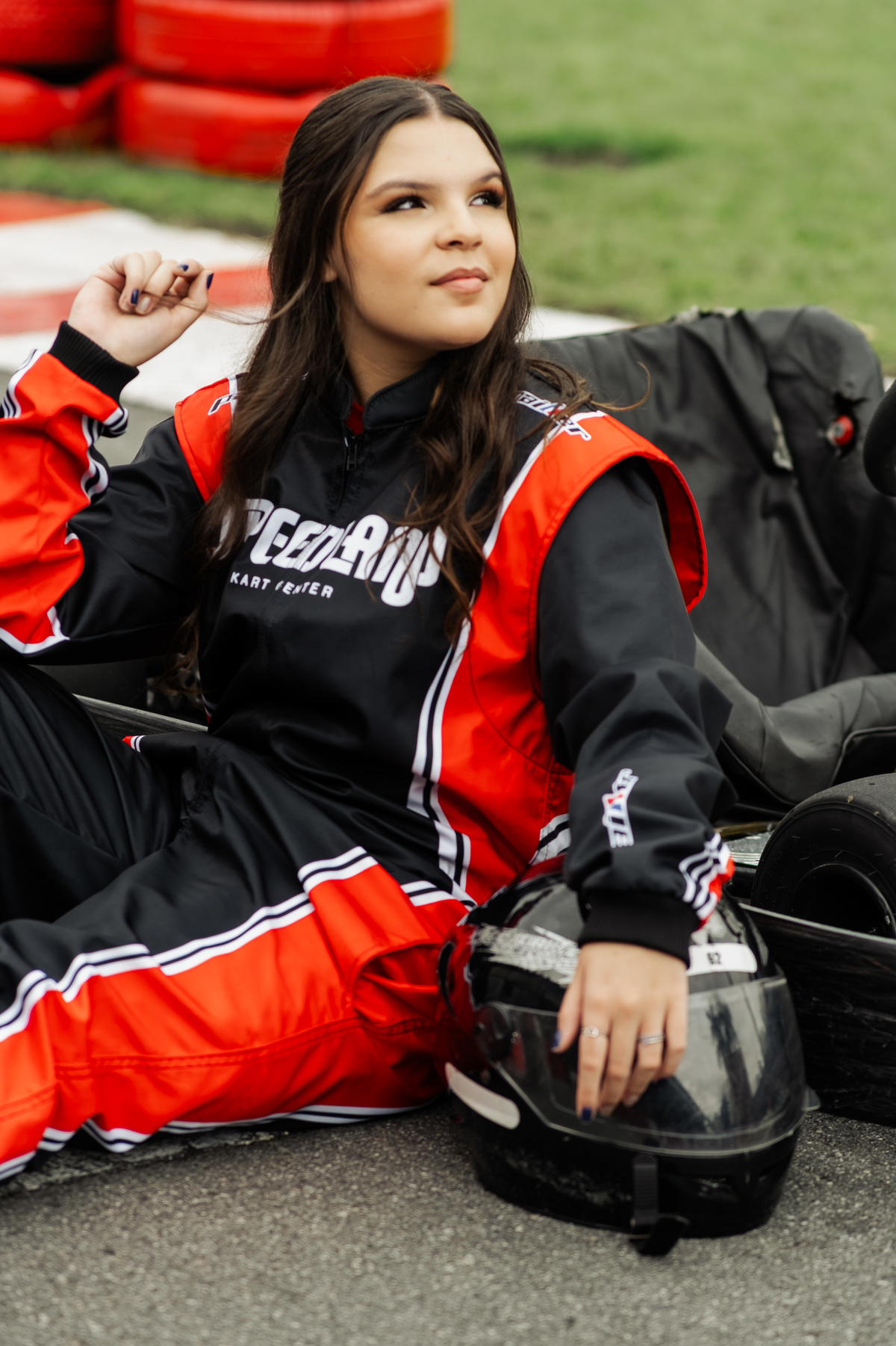 ✨ Capacete na cabeça, brilho no olhar e o kart rugindo! Clara mostrou que é pura velocidade e charme.