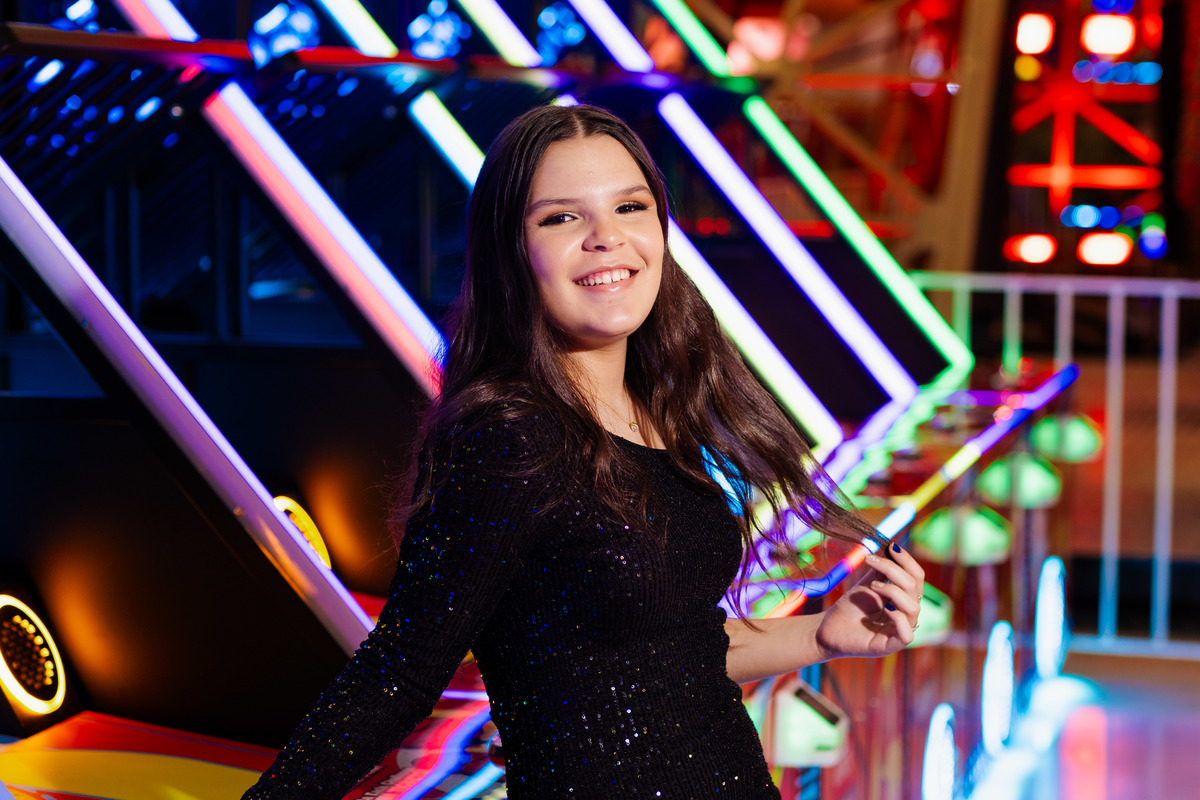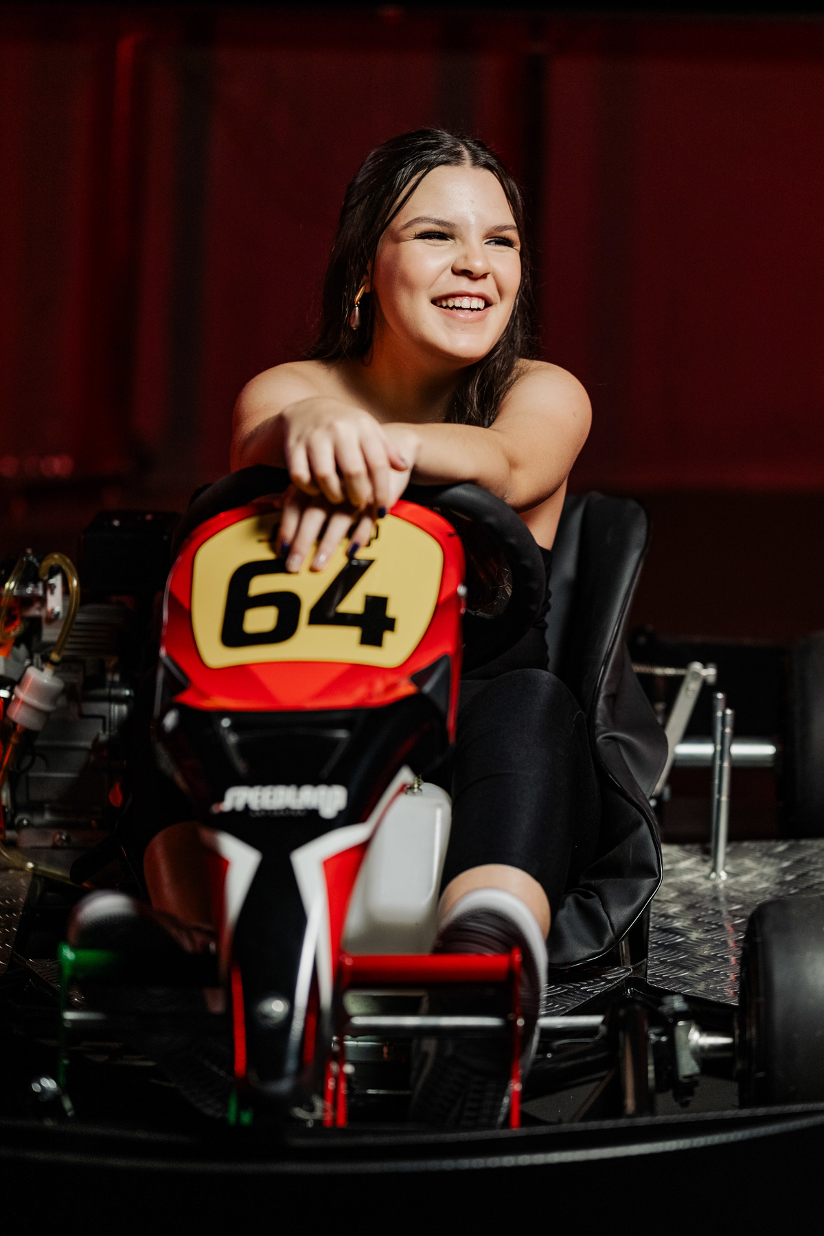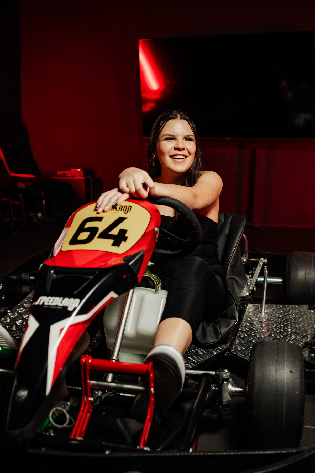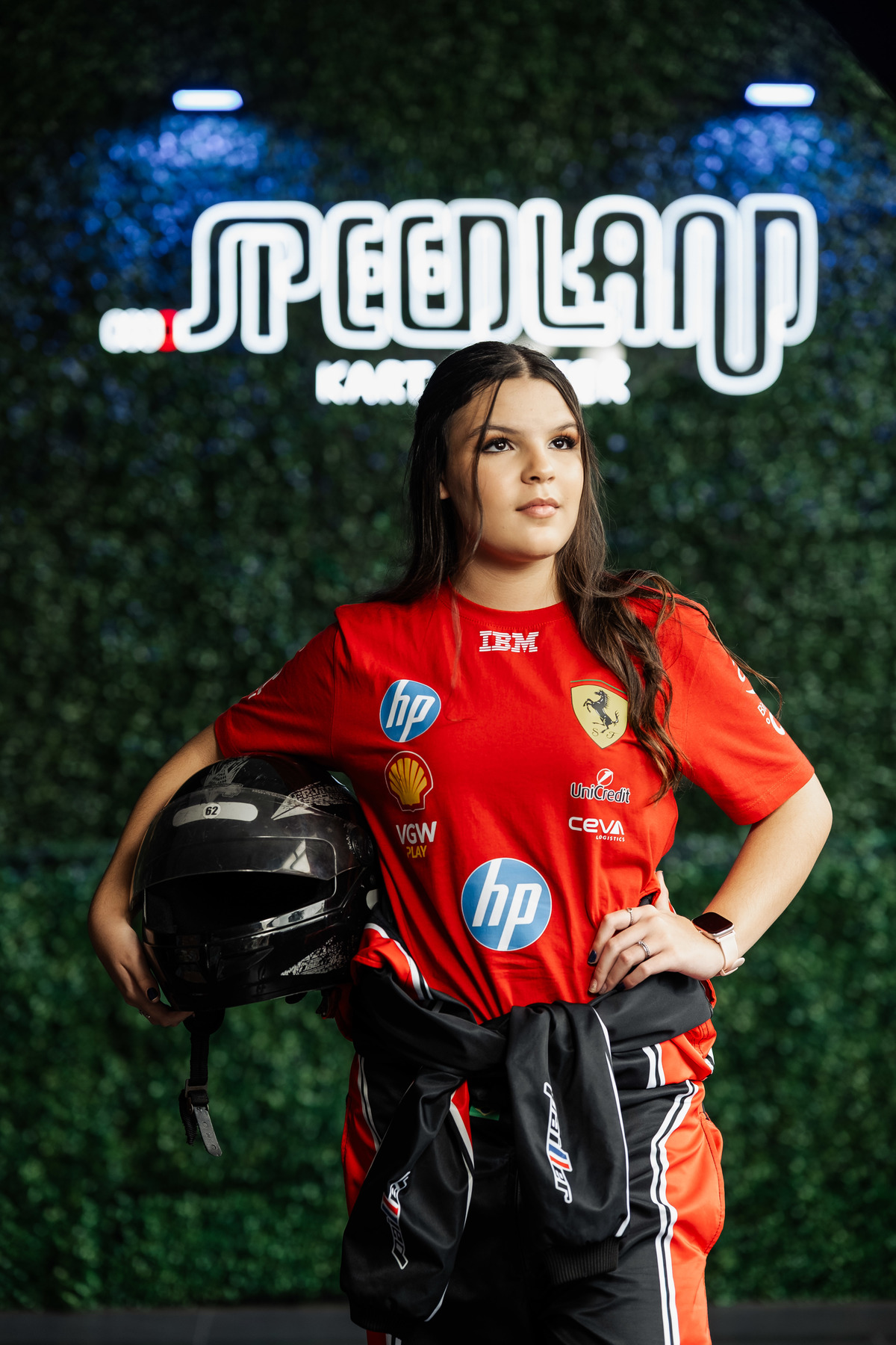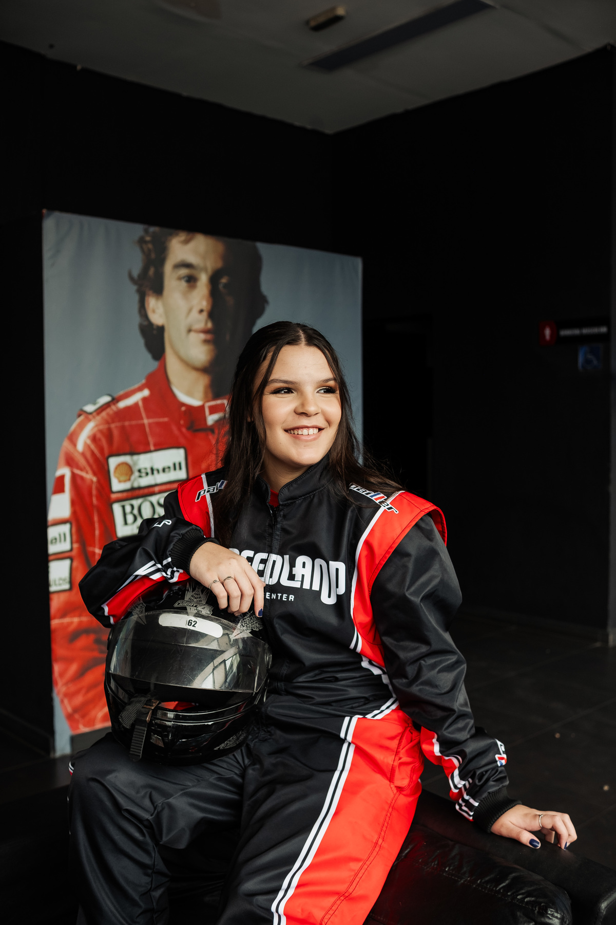 ✨ Capacete na cabeça, brilho no olhar e o kart rugindo! Clara mostrou que é pura velocidade e charme.